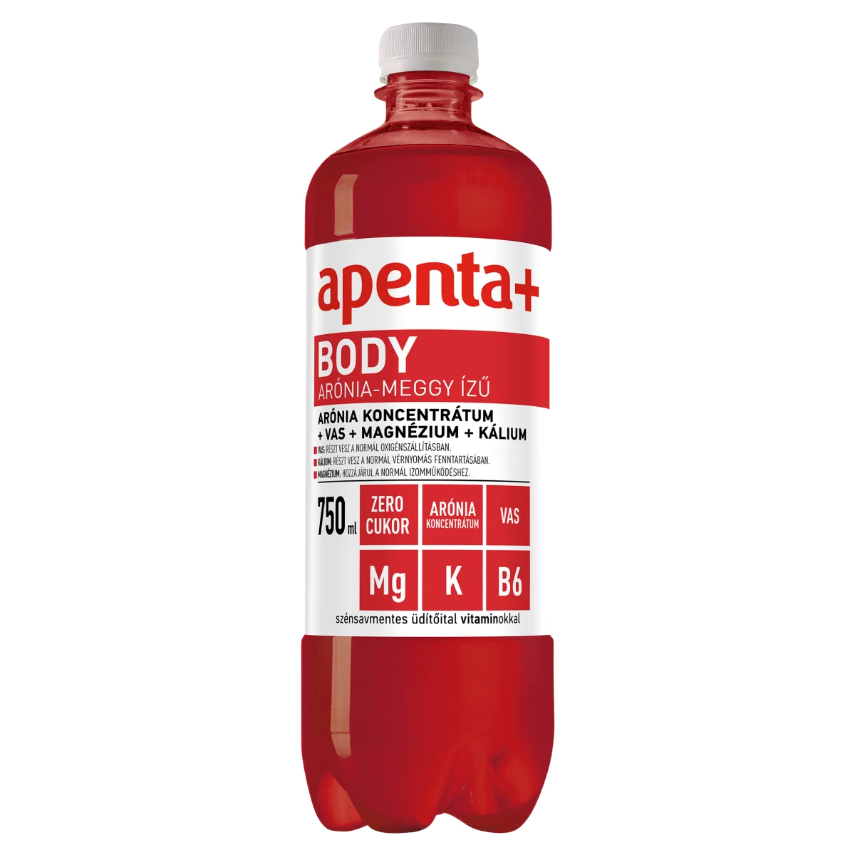 Apenta Mineral természetes ásványvíz,Arónialé 2% (koncentrátumból),Kálium-citrát,Étkezési sav (citromsav),Magnézium-karbonát,Tartósítószer (kálium-szorbát),Édesítőszerek (ciklamátok, aceszulfám K, szukralóz),Feketerépalé és áfonyalé sűrítményből,Aroma,Vas (II)-glükonát,Vitaminok (niacin ((B3-vitamin) nikotinamid), B6-vitamin (piridoxin-hidroklorid), tiamin ((B1-vitamin) tiamin-mononitrát))Tápanyagok