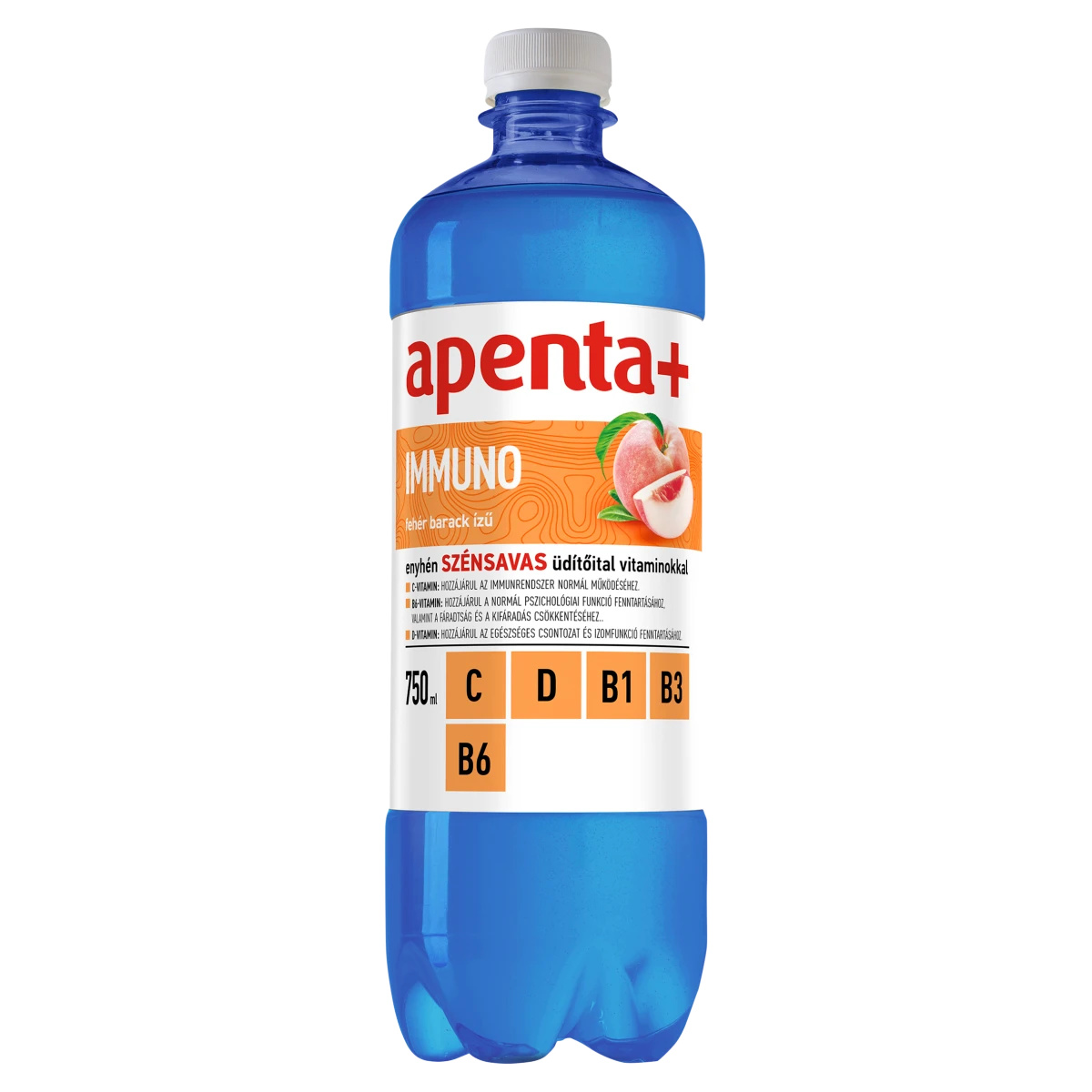 Fehér barack ízű, enyhén szénsavas üdítőital C-, D- és B-vitaminokkal