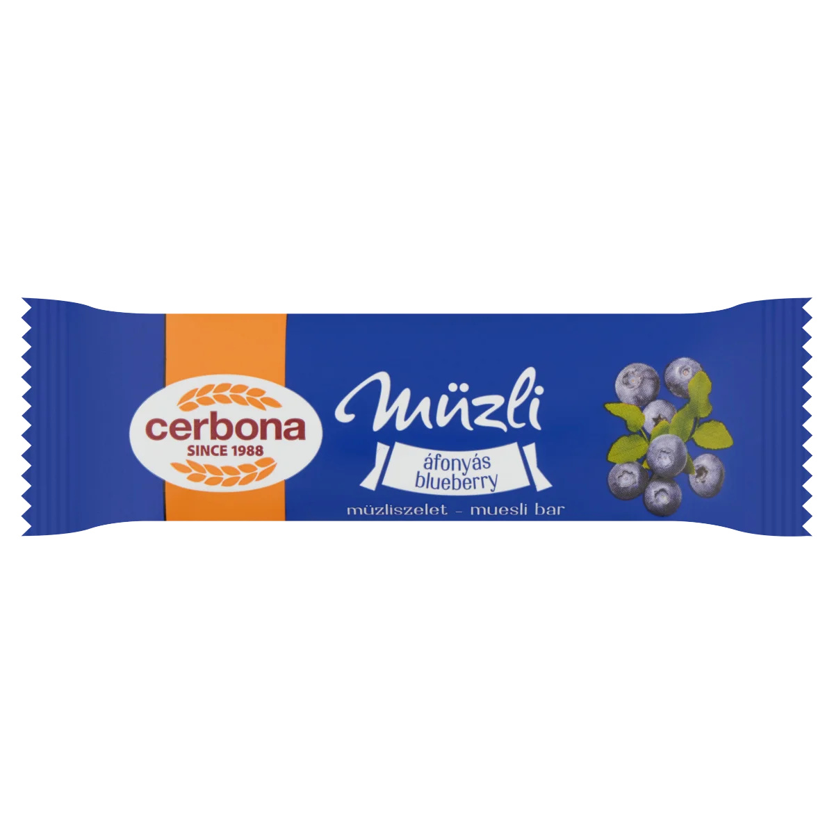 Áfonyás müzliszelet, joghurtos bevonó talppal.