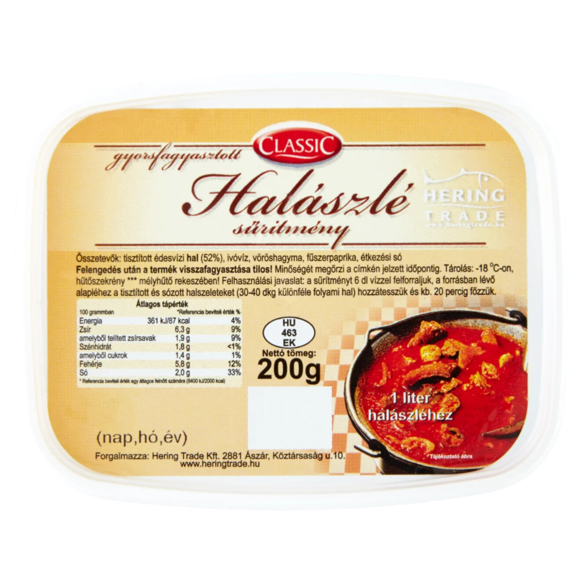 Tisztított édesvízi hal (52%),Ivóvíz,Vöröshagyma,Étkezési só,Édes fűszerpaprika,Csípős fűszerpaprikaTápanyagok
