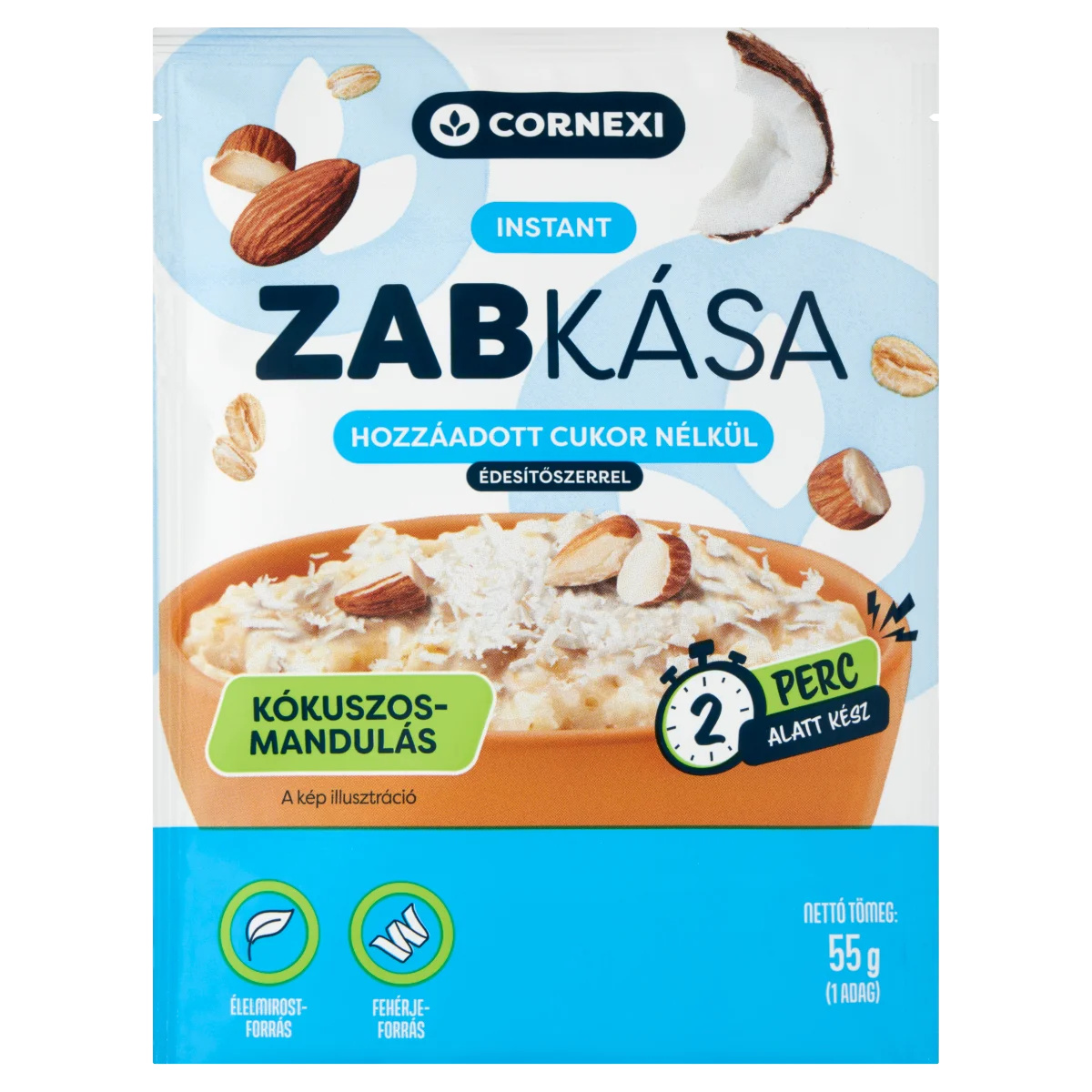 Zabpehely 62%,Édesítőszer: maltit,Sovány tejpor,Kukoricakeményítő,Chia mag 4% [aztékzsályamag (Salvia hispanica)],Szárított héjas almakocka,Kókuszreszelék 2%,Szeletelt mandula 2%,AromaTápanyagok