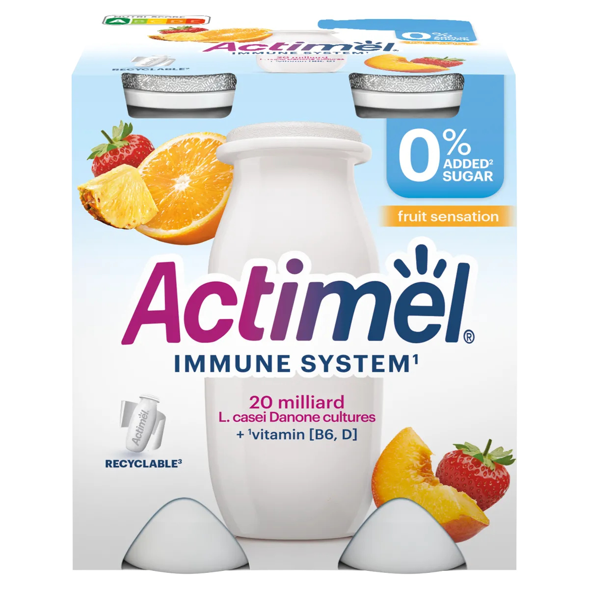 Hozzáadott B6- és D-vitamint tartalmaz, mely vitaminok hozzájárulnak az immunrendszer normál működéséhez. Egy palack Actimel a mindennapi kiegyensúlyozott, változatos étrend és egészséges életmód részeként fogyasztandó.