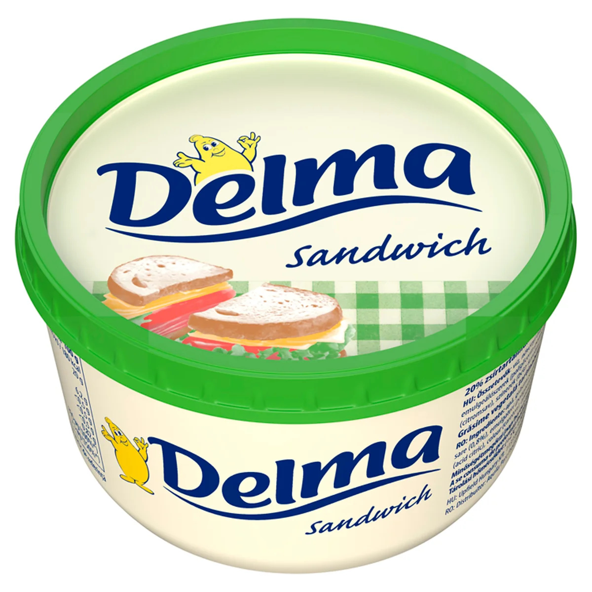 Víz,Növényi olajok és zsírok (pálma, repce, napraforgó, változó arányban),Só (0,8%),Emulgeálószerek (poliglicerin-poliricinoleát, zsírsavak mono- és digliceridjei),Aroma,Étkezési sav (citromsav),Színezék (béta-karotin),Antioxidáns (kalcium-dinátrium-EDTA),A-vitamin,D-vitaminTápanyagok