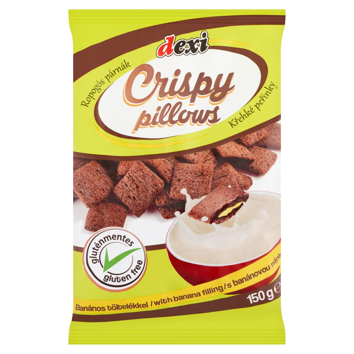 Ropogós párnák banános töltelékkel - gluténmentes, élelmi rostforrás. Extrudált termék.
