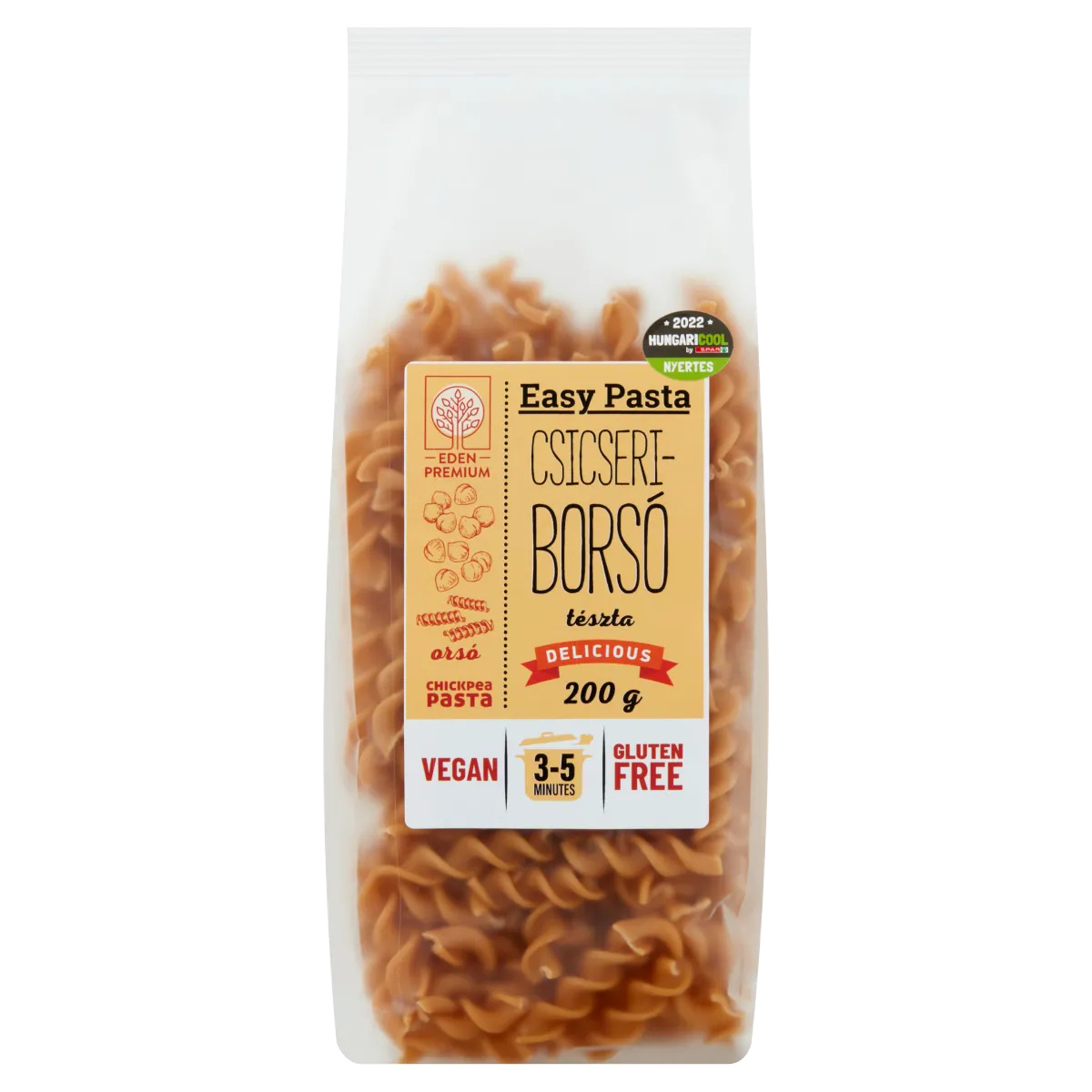 Csicseriborsóból készült gluténmentes száraztészta. Unod már a kukoricát, a hajdinát? Akkor itt az ideje, hogy valami mást próbálj ki! A hüvelyesek fehérjét és rostot, valamint jelentős vitamin- és ásványianyag-forrást, például vasat, cinket, folátot és magnéziumot biztosíthatnak. Tésztáinkra egytől-egyig igaz, hogy glutén-, tej-, tojás-, szója-, kukoricaliszt-, burgonya-, és adalékanyagmentesek. Állati összetevőktől szintén teljesen mentesek, így vegánok és vegetáriánus életmódot folytatók számára is fogyaszthatóak. Rendkívül gyorsan és egyszerűen elkészíthetők és az alapanyagoknak köszönhetően tápanyagokat juttathatunk általuk a szervezetünkbe. Eden Premium Easy Pasta. A gluténmentes tészták újhullámos változata. Elkészítési javaslat: Tegyük a kívánt mennyiséget bő, forrásban lévő vízbe, adjunk hozzá egy csipet sót és alacsony fokozaton főzzük 3-5 percig, szűrjük le, majd bő vízzel öblítsük át. A hagyományos tésztával megegyező módon fogyasztható. Gyors Te is szívesen fogyasztanál hüvelyeseket, de nincs időd órákig áztatni és főzni őket? Nos, Easy Pastáink töredék idő alatt készülnek el az alapanyagul szolgáló száraz hüvelyesekhez képest (csicseriborsó, vöröslencse és a feketebab), mégis ugyanazokkal a kiváló tulajdonságokkal bírnak. Forrástól nem több, mint körülbelül 4-5 perc alatt elkészülnek, ráadásul ugyanolyan állaguk lesz, mint a búza-alapú tésztáknak Pofon egyszerű az elkészítésük. Mégis hihetetlenül összetett és tápanyagdús ételek kiegészítője lehet. Nincs más dolgod, mint lobogó sós vízbe beledobni a kívánt mennyiséget és pár percen belül már szűrheted is le és tálalhatod kedvenc szószoddal. Vegán Teljesen növényi alapúak, tejet és tojást sem tartalmaznak. Állagukat az útifűmaghéj biztosítja, mely szintén kiváló tulajdonságokkal bír: megfelelő folyadékmennyiség fogyasztása mellett akár serkentheti az emésztést. Gluténmentes Szigorúan gluténmentes termékek, gondos ellenőrzés és folyamatos vizsgálatok biztosítják a kiváló minőségű, tiszta alapanyagokat. Rendkívül egészséges A hüvelyeseknek kiemelkedően magas a vitamin, ásványi anyag és antioxidáns tartalmuk, valamint koleszterin és vérnyomás csökkentő hatásuk is lehet. Fehérjedús A hüvelyesek a legjobb növényi alapú fehérjeforrásaink között vannak. 100 g Easy Pasta körülbelül 20% fehérjét tartalmaz, mely a húsmentes ételek között kiemelkedően magas érték. Segítheti az emésztést Élelmi rost források, aminek köszönhetően segíthetik az emésztést és a bélrendszer helyes működését. Fogyasztásuk hosszútávú teltségérzetet biztosíthat. Finom és izgalmas Csak a fantáziád szabhat határt annak, hogyan készíted el őket. Kiváló alapanyagok, melyek ízletesek, mégis visszafogottak annyira, hogy kiválóan alkalmazkodjanak bármilyen ételhez. Legyen az egy ízletes és friss tésztasaláta szezonális zöldségekkel, vagy egy olaszos tésztaétel friss paradicsommal és bazsalikommal, vagy a kedvenc mexikói chilisbab ételed. Bármilyen ízvilághoz passzol, a kókusztejes thai curry, a kínai wok zöldségek, vagy egy magyaros zöldségpörkölt mind kiváló társai lehetnek a hüvelyes tésztáinknak.