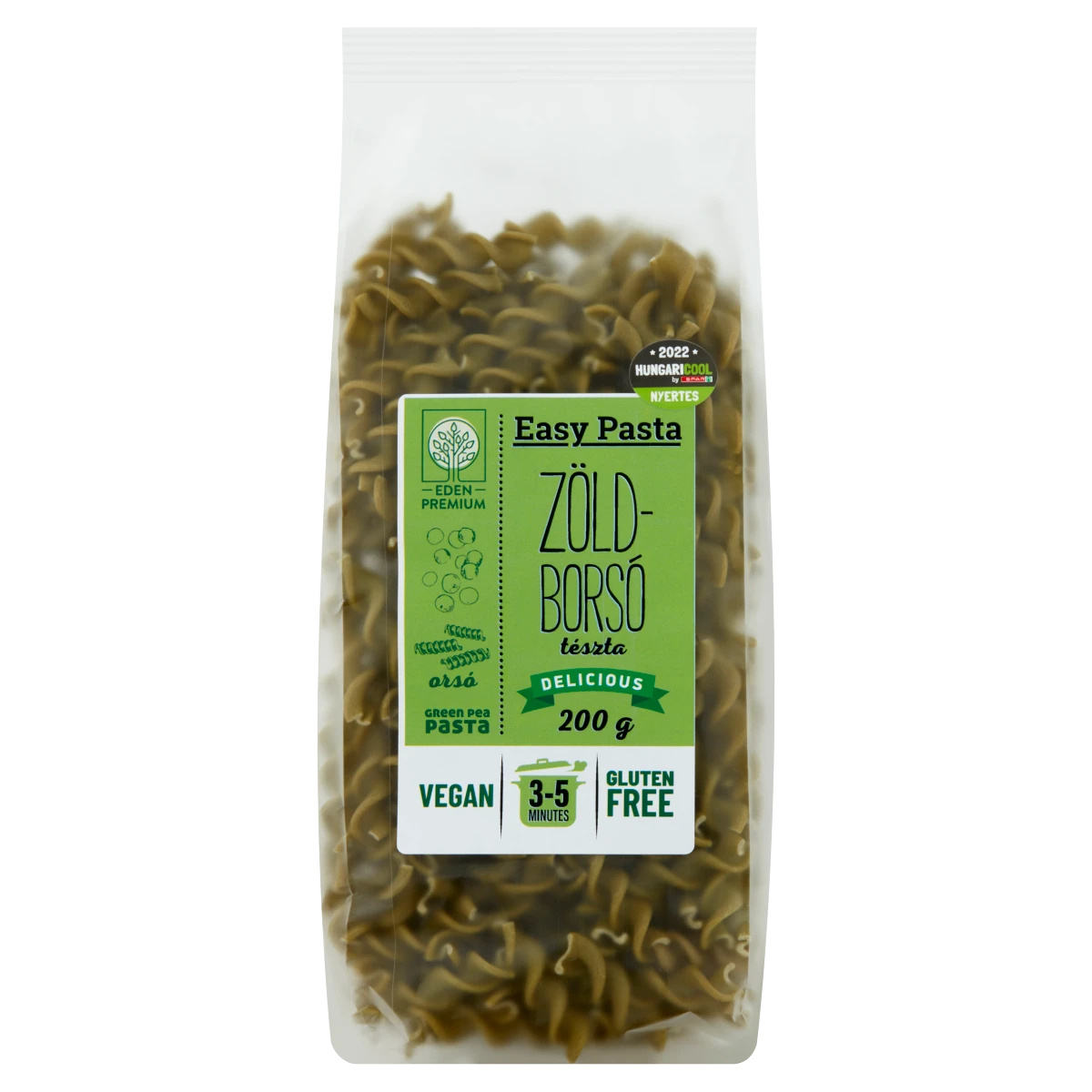 Zöldborsóból készült gluténmentes száraztészta. Unod már a kukoricát, a hajdinát? Akkor itt az ideje, hogy valami mást próbálj ki! A hüvelyesek fehérjét és rostot, valamint jelentős vitamin- és ásványianyag-forrást, például vasat, cinket, folátot és magnéziumot biztosíthatnak. Tésztáinkra egytől-egyig igaz, hogy glutén-, tej-, tojás-, szója-, kukoricaliszt-, burgonya-, és adalékanyagmentesek. Állati összetevőktől szintén teljesen mentesek, így vegánok és vegetáriánus életmódot folytatók számára is fogyaszthatóak. Rendkívül gyorsan és egyszerűen elkészíthetők és az alapanyagoknak köszönhetően tápanyagokat juttathatunk általuk a szervezetünkbe. Eden Premium Easy Pasta. A gluténmentes tészták újhullámos változata. Elkészítési javaslat: Tegyük a kívánt mennyiséget bő, forrásban lévő vízbe, adjunk hozzá egy csipet sót és alacsony fokozaton főzzük 3-5 percig, szűrjük le, majd bő vízzel öblítsük át. A hagyományos tésztával megegyező módon fogyasztható. Gyors Te is szívesen fogyasztanál hüvelyeseket, de nincs időd órákig áztatni és főzni őket? Nos, Easy Pastáink töredék idő alatt készülnek el az alapanyagul szolgáló száraz hüvelyesekhez képest (csicseriborsó, vöröslencse és a feketebab), mégis ugyanazokkal a kiváló tulajdonságokkal bírnak. Forrástól nem több, mint körülbelül 4-5 perc alatt elkészülnek, ráadásul ugyanolyan állaguk lesz, mint a búza-alapú tésztáknak. Pofon egyszerű Az elkészítésük. Mégis hihetetlenül összetett és tápanyagdús ételek kiegészítője lehet. Nincs más dolgod, mint lobogó sós vízbe beledobni a kívánt mennyiséget és pár percen belül már szűrheted is le és tálalhatod kedvenc szószoddal. Vegán Teljesen növényi alapúak, tejet és tojást sem tartalmaznak. Állagukat az útifűmaghéj biztosítja, mely szintén kiváló tulajdonságokkal bír: megfelelő folyadékmennyiség fogyasztása mellett akár serkentheti az emésztést. Gluténmentes Szigorúan gluténmentes termékek, gondos ellenőrzés és folyamatos vizsgálatok biztosítják a kiváló minőségű, tiszta alapanyagokat. Rendkívül egészséges A hüvelyeseknek kiemelkedően magas a vitamin, ásványi anyag és antioxidáns tartalmuk, valamint koleszterin és vérnyomás csökkentő hatásuk is lehet. Fehérjedús A hüvelyesek a legjobb növényi alapú fehérjeforrásaink között vannak. 100 g Easy Pasta körülbelül 20 % fehérjét tartalmaz, mely a húsmentes ételek között kiemelkedően magas érték. Segítheti az emésztést Élelmi rost források, aminek köszönhetően segíthetik az emésztést és a bélrendszer helyes működését. Fogyasztásuk hosszútávú teltségérzetet biztosíthat. Finom és izgalmas Csak a fantáziád szabhat határt annak, hogyan készíted el őket. Kiváló alapanyagok, melyek ízletesek, mégis visszafogottak annyira, hogy kiválóan alkalmazkodjanak bármilyen ételhez. Legyen az egy ízletes és friss tésztasaláta szezonális zöldségekkel, vagy egy olaszos tésztaétel friss paradicsommal és bazsalikommal, vagy a kedvenc mexikói chilisbab ételed. Bármilyen ízvilághoz passzol, a kókusztejes thai curry, a kínai wok zöldségek, vagy egy magyaros zöldségpörkölt mind kiváló társai lehetnek a hüvelyes tésztáinknak.