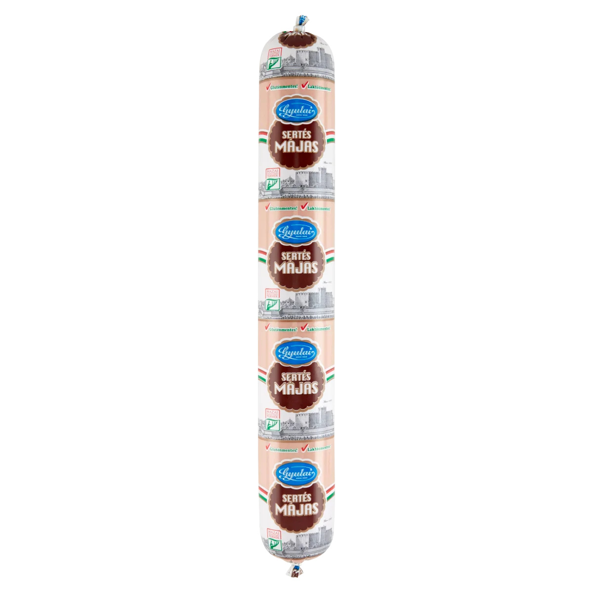 Ivóvíz,Sertésmáj /25%/,Sertés szalonna,Sertéshús,Sertés bőrke,Szójafehérje,Étkezési só,Stabilizátorok: zsírsavak mono- és digliceridjeinek citromsav-észterei, karboxi-metil-cellulóz,Fűszerek /mustármagot tartalmaz/,Ízfokozó: nátrium- glutamát,Füstaroma,Fűszerkivonatok,Tartósítószer: nátrium-nitritTápanyagok