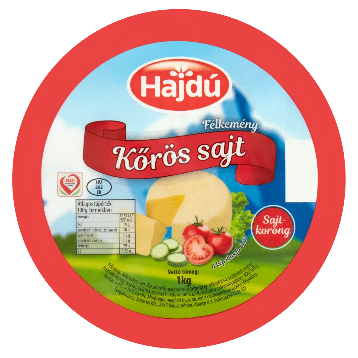 Pasztőrözött tehéntej,Étkezési só,Szilárdító anyag: kalcium-klorid,Tejoltó,Kultúra,Színezék: béta karotin,Zsírtartalom a szárazanyagban: 30 g/100 gTápanyagok
