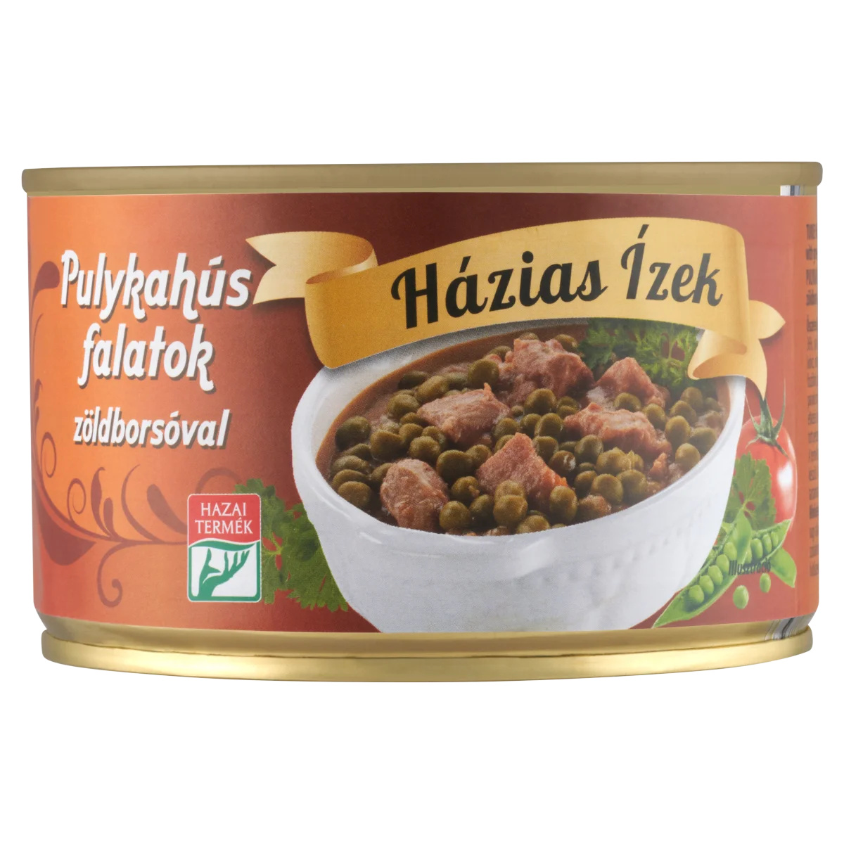 Ivóvíz,Gyorsfagyasztott zöldborsó 36%,Pácolt pulykahús 13% (pulykahús 85%, ivóvíz, étkezési só, stabilizátorok: trifoszfátok, difoszfátok, sűrítő anyag: E 407a),Búzaliszt,Sűrített paradicsom,Cukor,Ételízesítő (ízfokozó nélkül),Étkezési só,Módosított kukoricakeményítő,Szárított petrezselyemlevél,FűszerTápanyagok
