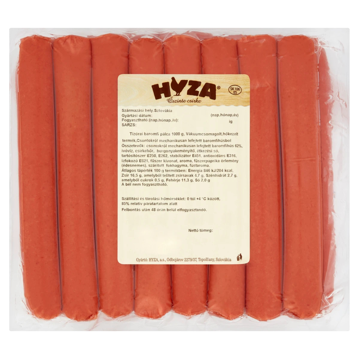 Csontokról mechanikusan lefejtett baromfihús 62%,Ivóvíz,Csirkebőr,Burgonyakeményítő,Étkezési só,Tartósítószer E250, E262,Stabilizátor E451,Antioxidáns E316,Ízfokozó E621,Fűszer kivonat,Aroma,Fűszerpaprika őrlemény (édesnemes),Szárított fokhagyma,FüstaromaTápanyagok