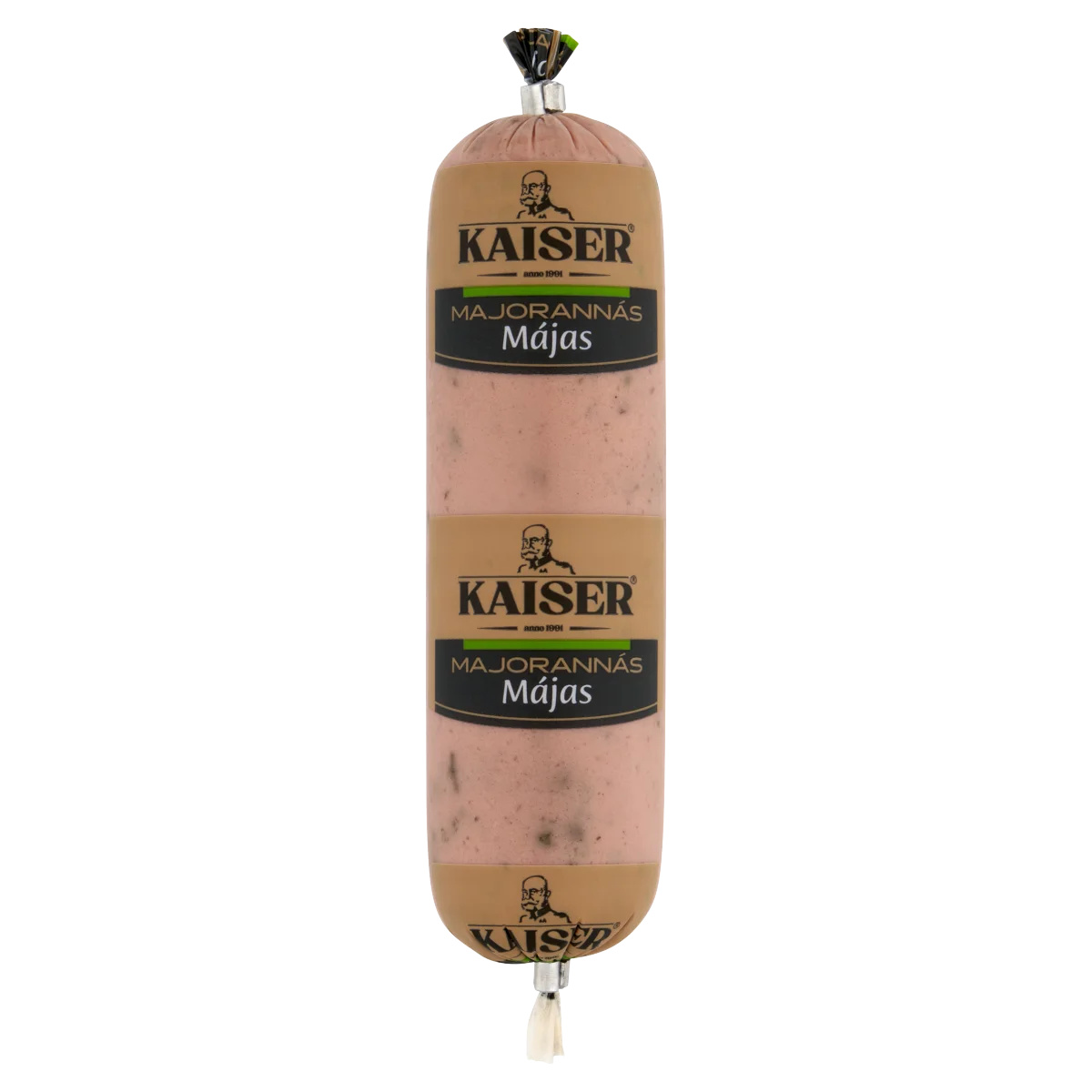 Sertésmáj 26%,Sertésszalonna,Ivóvíz,Sertésbőrke,Kukoricakeményítő,Sűrítőanyag (E412, E407a, E415),Emulgeálószer (E472c),Stabilizátor (E451),Antioxidáns (E316),Füstös aroma,Fűszerkivonatok,Fűszerek,Színezék (E120),Étkezési só,Módosított keményítő,Majoranna 0,5%,Tartósítószer (E250)Tápanyagok