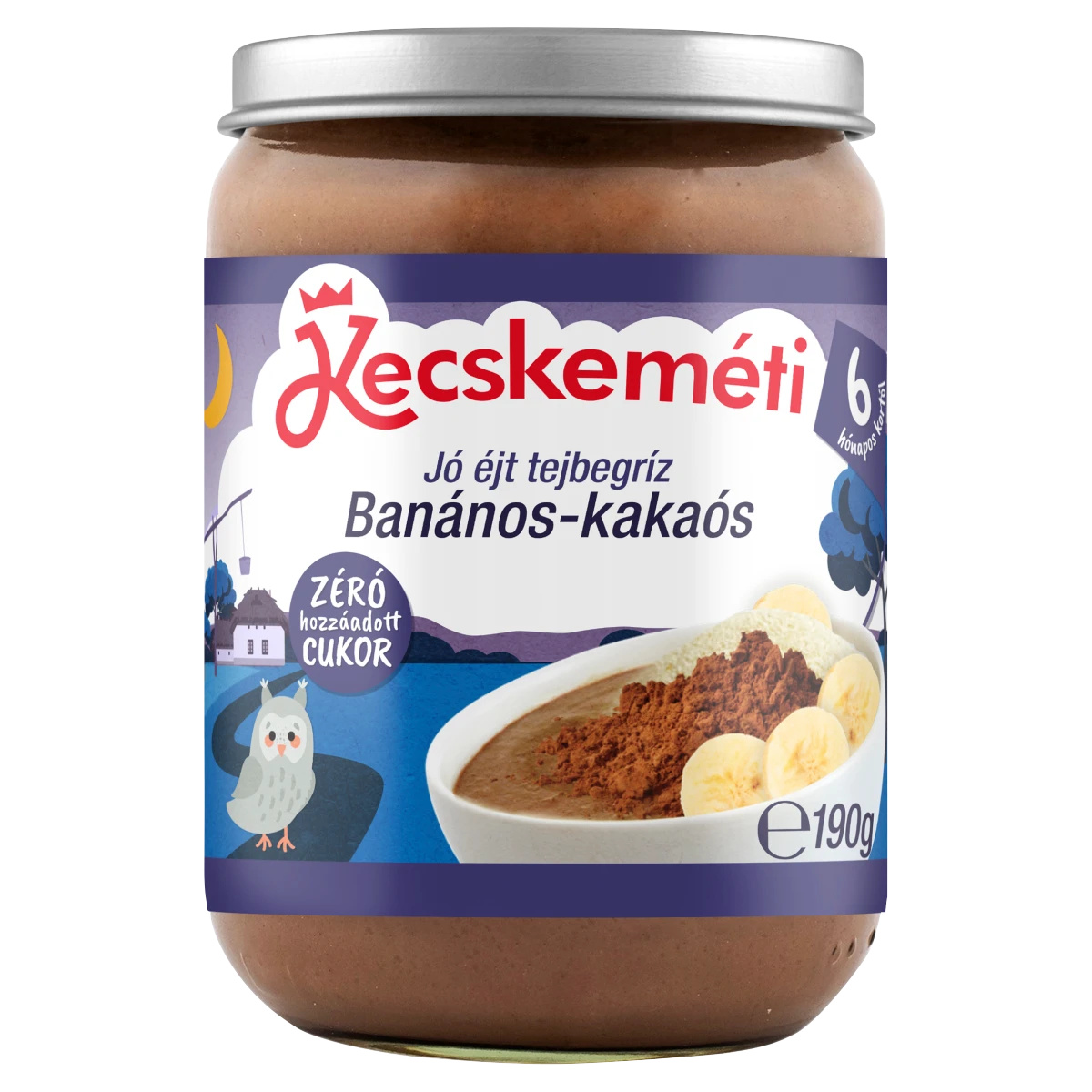 Banános-kakaós tejbegríz bébidesszert 6 hónapos kortól. Hőkezeléssel tartósított.