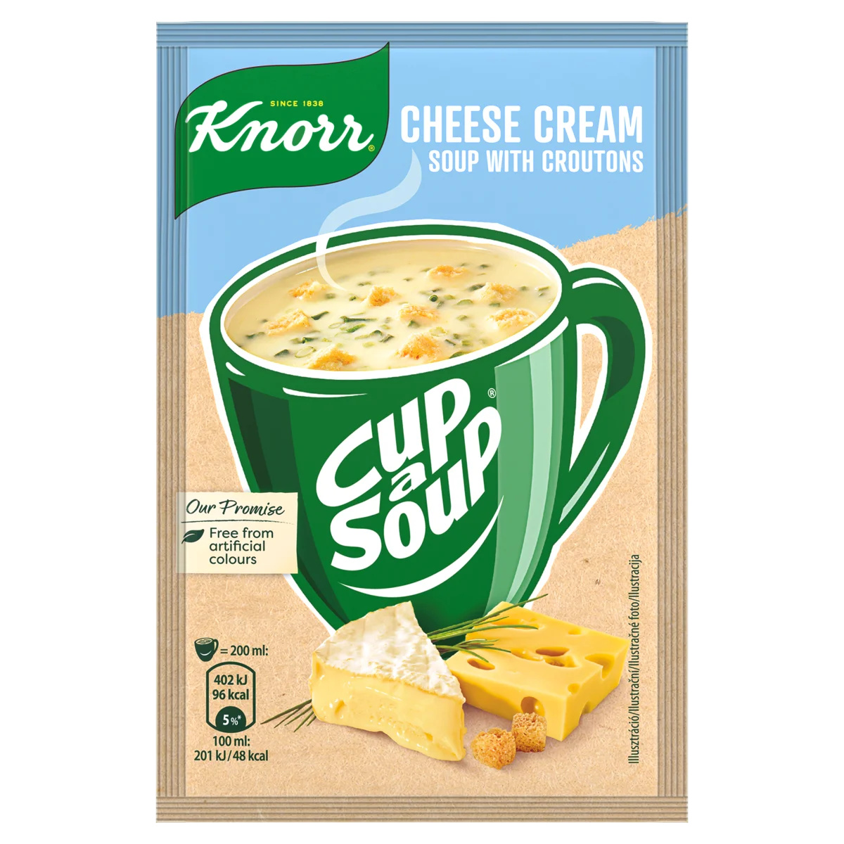 Keményítő,18% sajtkészítménypor (ementáli sajt, egyéb sajt, tejsavókészítmény),12% zsemlekocka [fehérkenyér (búzaliszt, só, élesztő, repceolaj), pálmaolaj, antioxidáns (rozmaringkivonatok)],Pálmazsír,Glükózszirup,Cukor,Só,Vöröshagymapor¹,Élesztőkivonat,Sóhelyettesítő (kálium-klorid),Jódozott só (só, kálium-jodát),Aromák (tejjel),1% metélőhagyma¹,Tejfehérje,Fűszerek (kurkuma¹, petrezselyemgyökér-por),¹Fenntartható gazdaságbólTápanyagok