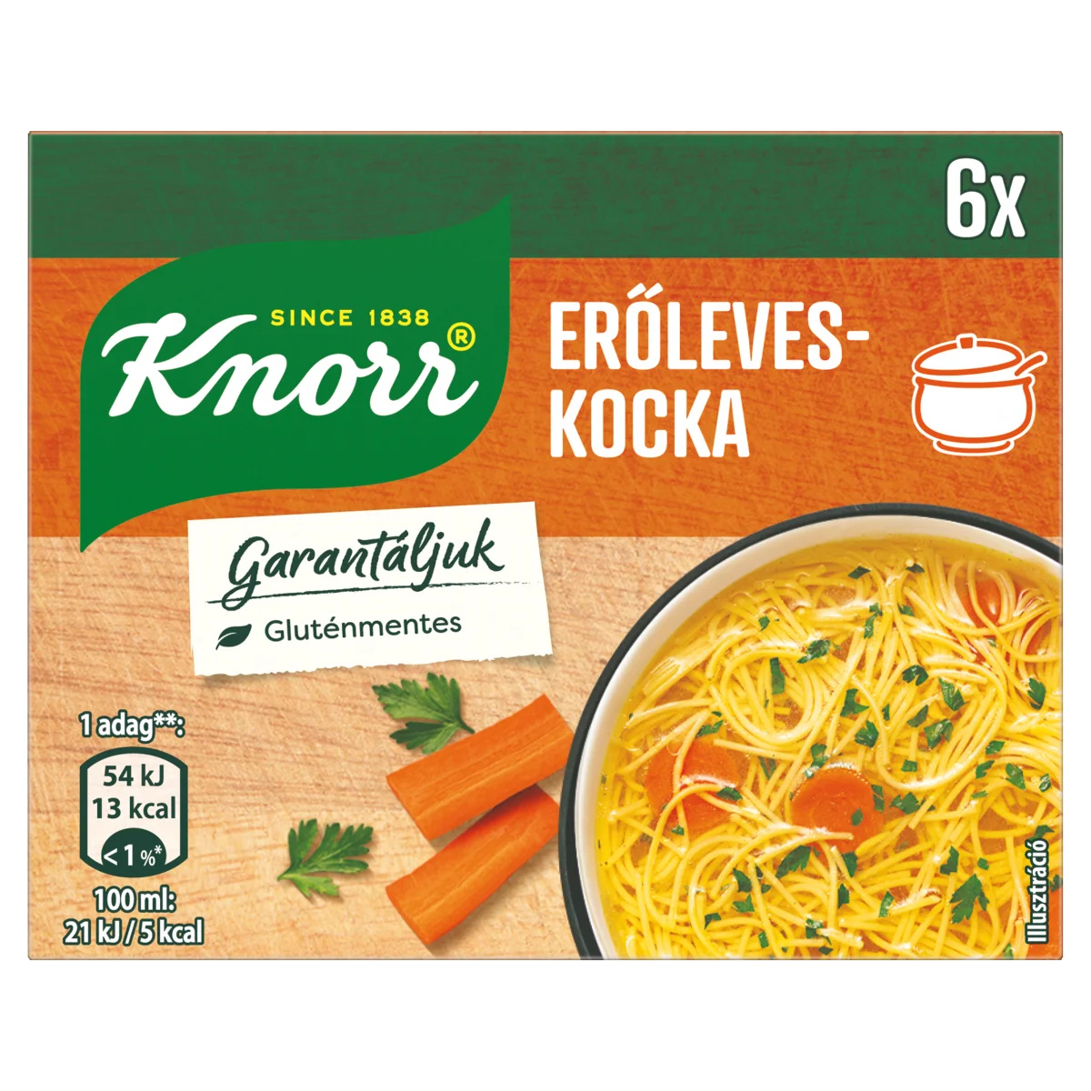 Erőleves 3 főre: Főzzön egy kellemes alaplevet 600 ml vízben 200 g marhahúsból és 200 g leveszöldségből. A főzés végén adjon hozzá 1 db Knorr Erőleveskockát, és oldódásig keverje.