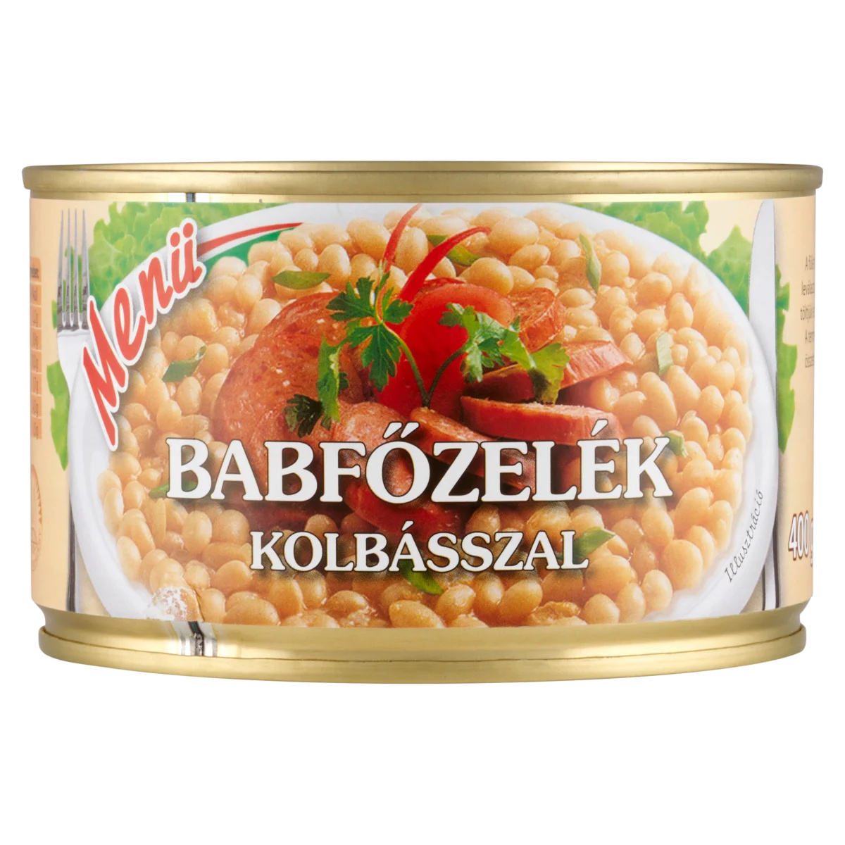 Ivóvíz,Étkezési szárazbab 12,5%,Baromfi lecsókolbász 9% (baromfihús 34%, bőrös baromfizsiradék, ivóvíz, sertésbőrke, szójafehérje, étkezési só, stabilizátor: E451, fűszerkivonatok, ízfokozó: E621, fűszer, antioxidáns: E316, aroma, élesztőkivonat, tartósítószer: E250),Búzaliszt,Napraforgó étolaj,Vöröshagymapép,Étkezési só,Ételízesítő (E621, E631, E627),Fűszerek,Cukor,Ételecet,FüstaromaTápanyagok