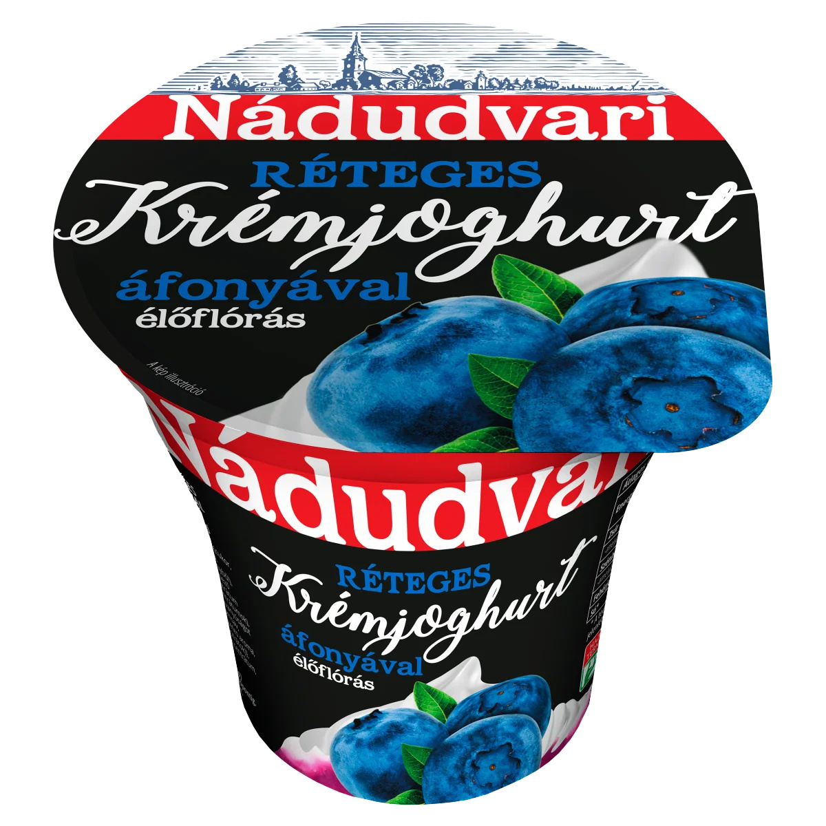 Pasztőrözött tej (3,7% zsírtartalmú),Áfonyás gyümölcskészítmény (17%) {cukor, víz, gyümölcs (25%) (áfonya, áfonyalé áfonyalé sűrítményből), módosított keményítő, színező gyümölcs-/zöldség koncentrátum (répa, arónia, szőlő koncentrátumok), sűrítőanyag (pektinek), savanyúságot szabályozó anyagok (citromsav, nátrium-citrátok), természetes aroma, szilárdító anyag (kálcium-citrátok)},Cukor,Tejsavófehérje-koncentrátum,Zselatin,Joghurt kultúraTápanyagok