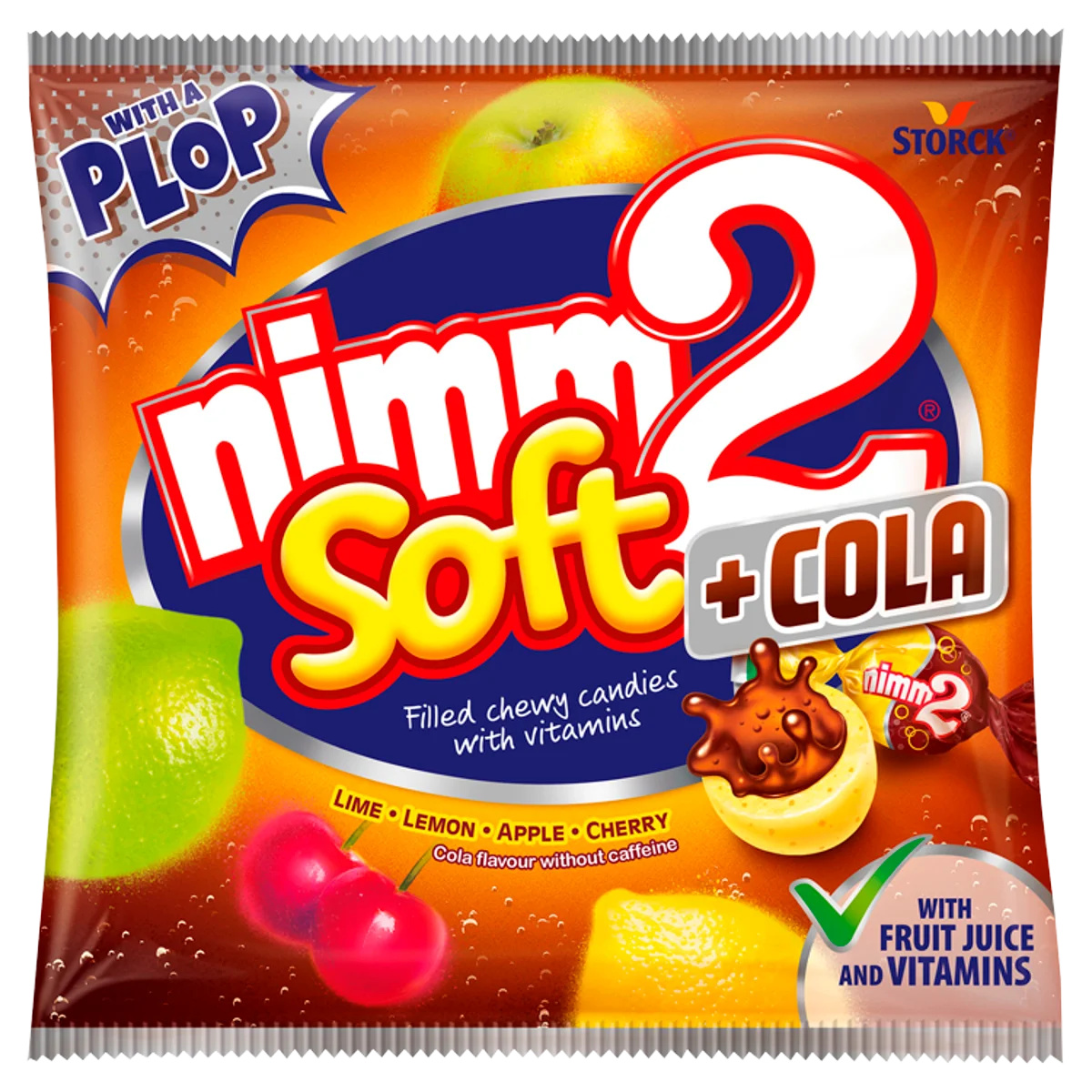 Gyümölcsös töltött olvadó cukorka gyümölcslével, vitaminokkal és kóla ízesítéssel (koffeinmentes).