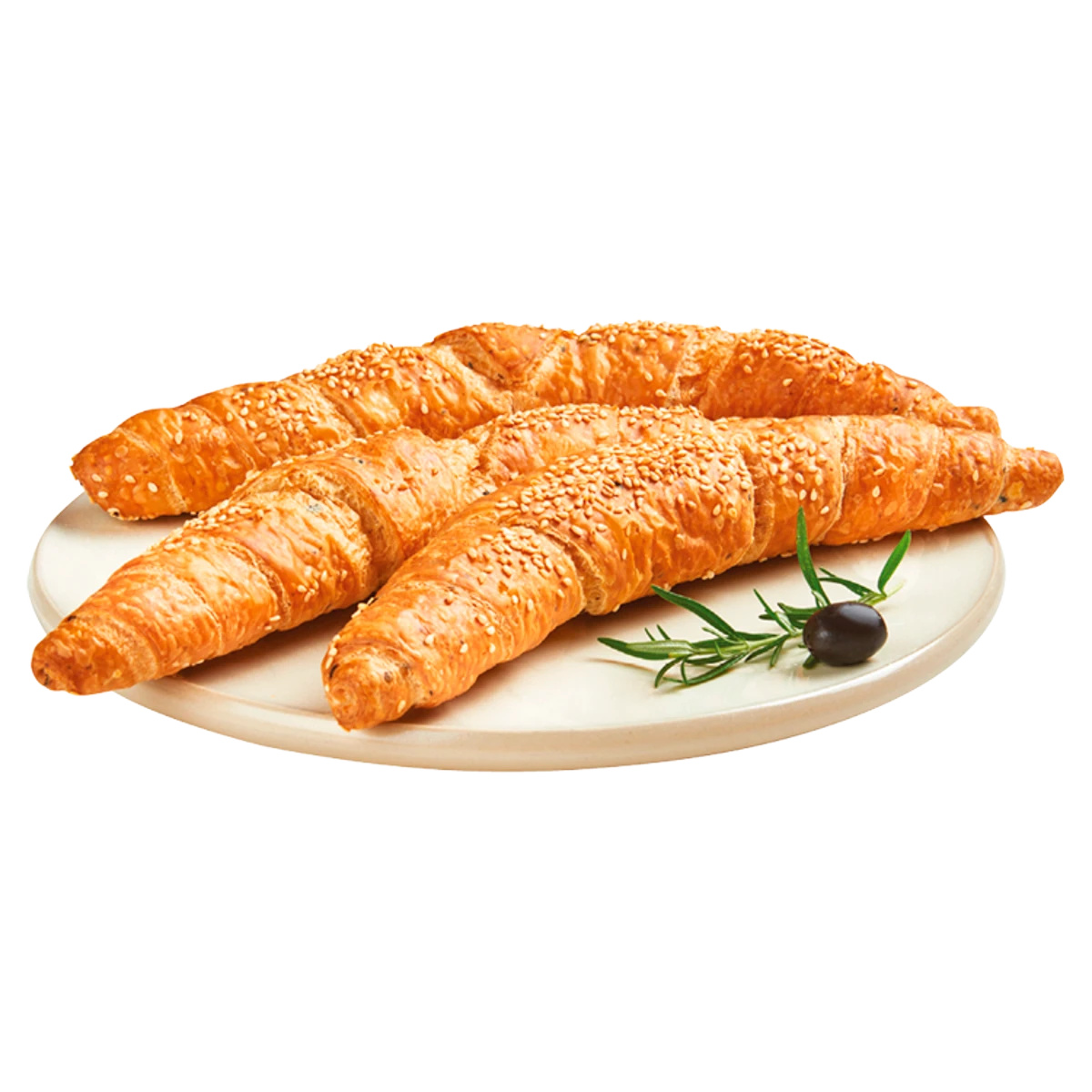 Búzafinomliszt,Ivóvíz,Margarin [növényi zsírok és olajok (pálma, repce, napraforgó), ivóvíz, étkezési só, emulgeálószer: zsírsavak mono- és digliceridjei; étkezési sav: citromsav; aroma, színezék: karotinok],Fekete olívabogyó 5,4 g/100 g (olíva, víz, só, színstabilizátor: vas-glükonát E579),Szezámmag,Étkezési só,Élesztő,Édes tejsavó,Sovány tejpor,Cukor,Tojáspor,Aroma,Búzaglutén,Emulgeálószer: zsírsavak mono- és digliceridjeinek mono- és diacetil-borkősav-észterei E472e,Térfogatnövelő szer: kalcium-foszfát E341, nátriumkarbonát E500,Difoszfát E450,Sűrítő anyag: guarmag liszt,Inaktivált élesztő,Enzimek,Lisztkezelő szer: aszkorbinsav E300Tápanyagok