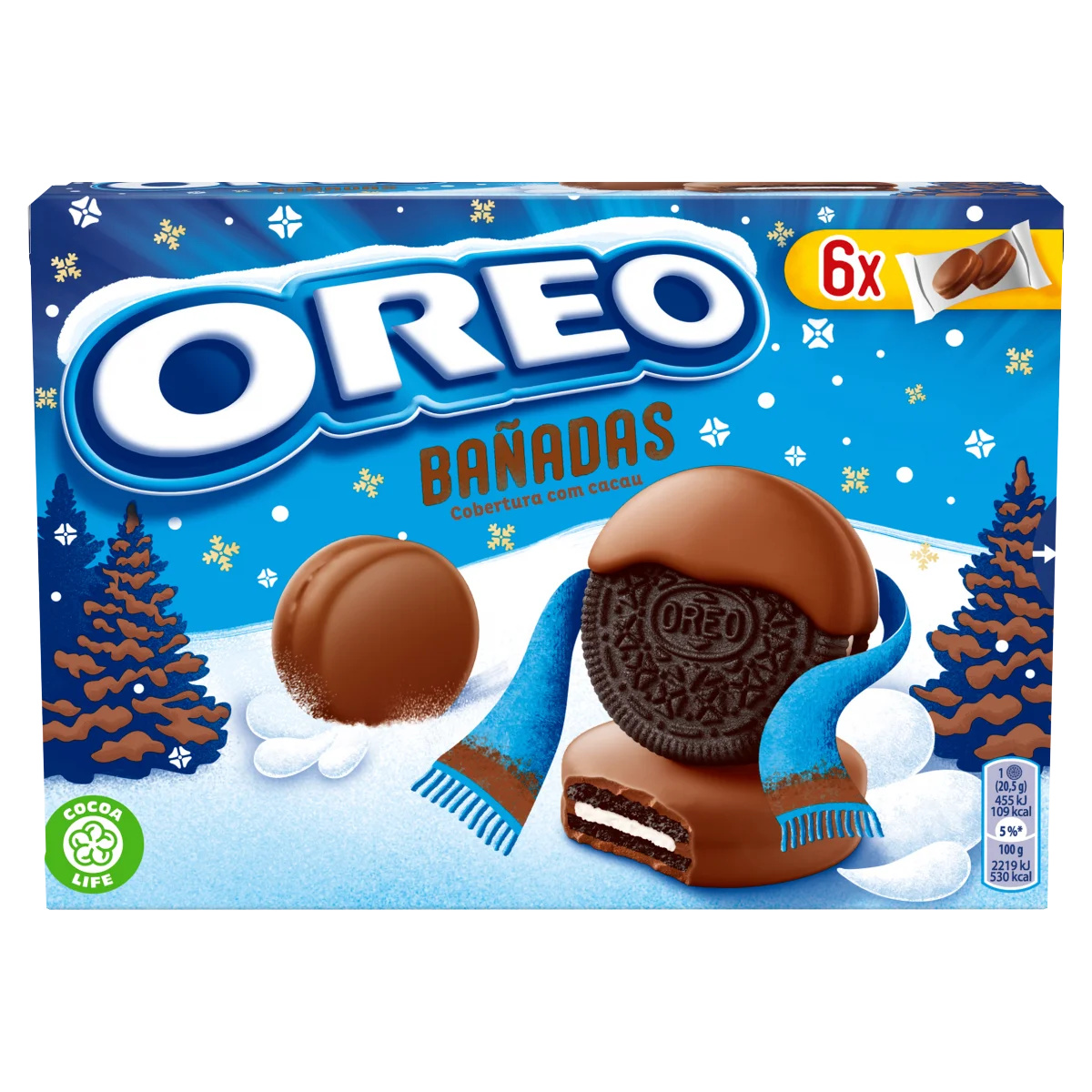 Vaníliaízű töltelékkel (19%) töltött kakaós keksz (38%) kakaós tejbevonómasszával (43%) mártva.