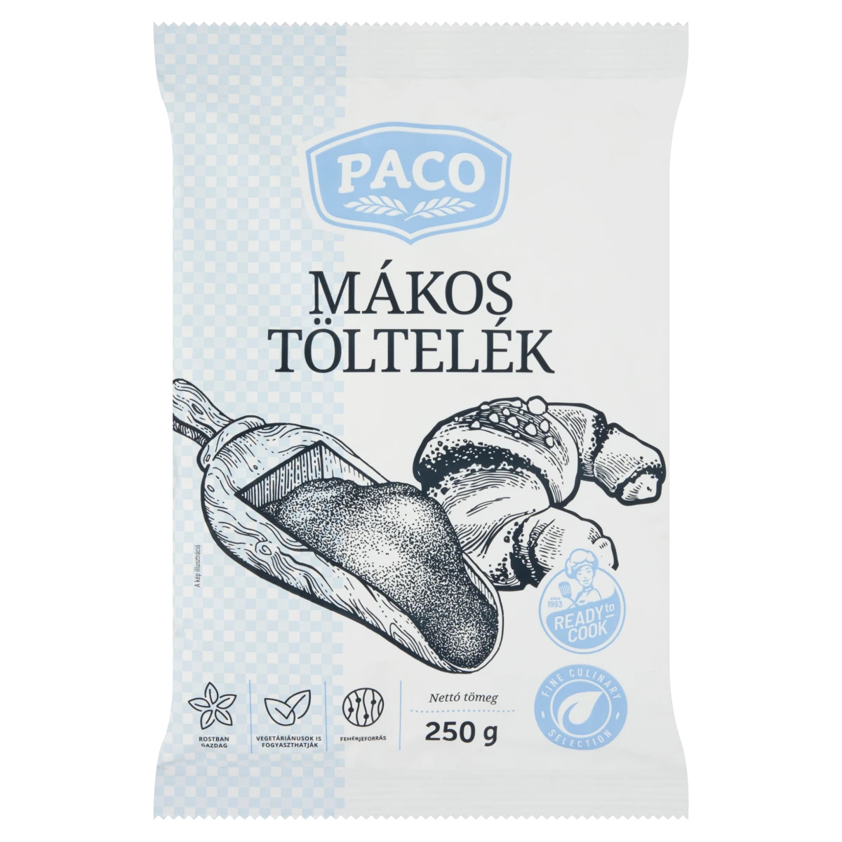 Receptajánlatunk: Mákkrémes palacsinta: Hagyományos módon elkészítünk 10 db palacsintát. A 25 dkg Paco mákos tölteléket 1-1,5 dl forró tejjel felfőzzük. A palacsintákat megtöltjük a mákkrémmel, feltekerjük, majd 3 cm-es darabokra vágjuk, melyeket felállítgatunk a tányéron. Vanília pudinggal leöntve tálaljuk.