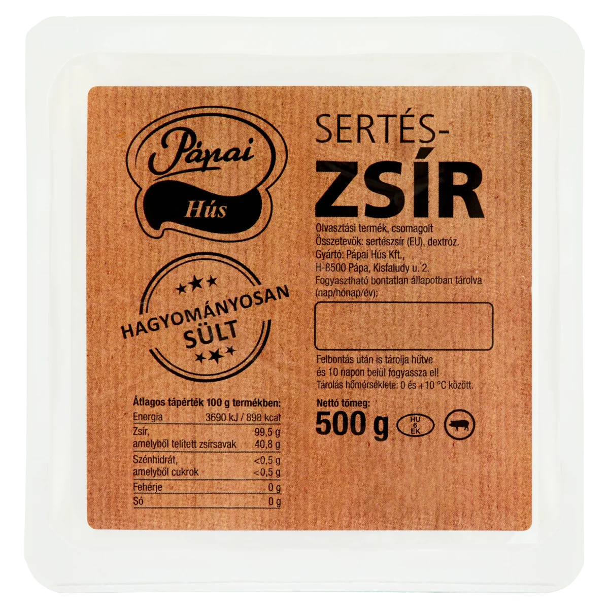 Sertészsír. Olvasztási termék, csomagolt
