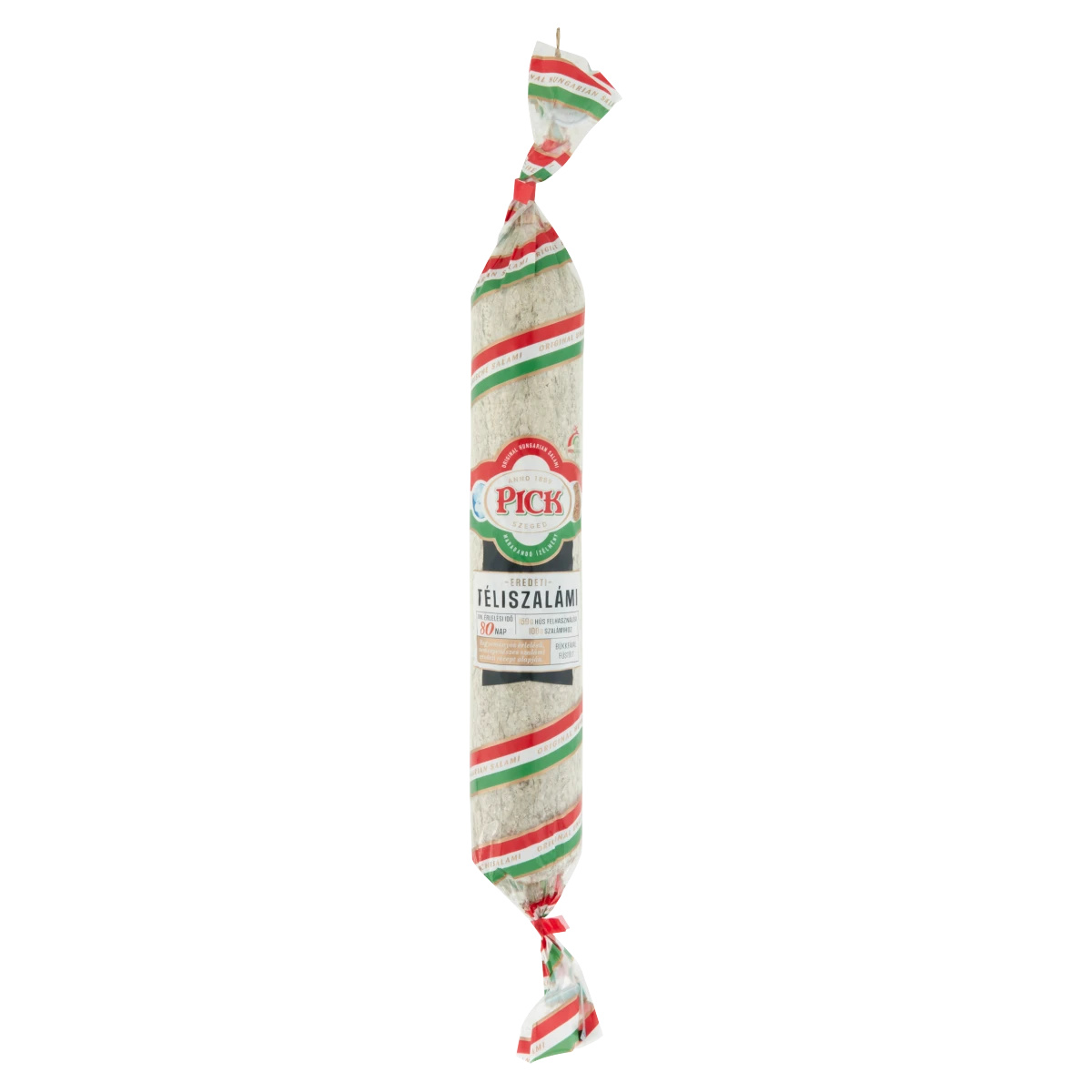 A minőségmegőrzési idő vágatlan rúdra értendő. Minőségét megőrzi (nap/hó/év): jelölve a címkén. Szállítás és tárolás: +20°C alatt, száraz helyen, lehetőség szerint függesztve. Tárolás alatt kismértékű tömegváltozás előfordulhat