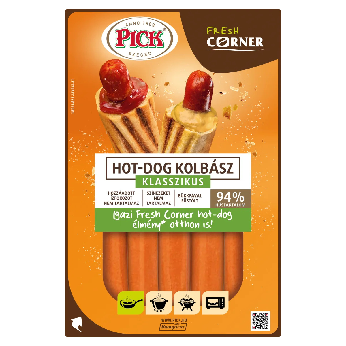 Elkészítési javaslat (a csomagolás eltávolítása után): serpenyőben 10 percig egyenletesen sütve - az igazi Fresh Corner élményhez* ezt ajánljuk vízben 5 percig gyöngyöző vízben melegítve grillen 10 percig egyenletesen sütve mikróban 1-2 percig melegítve. *A MOL Fresh Corner hot-dogok is ezzel készülnek.