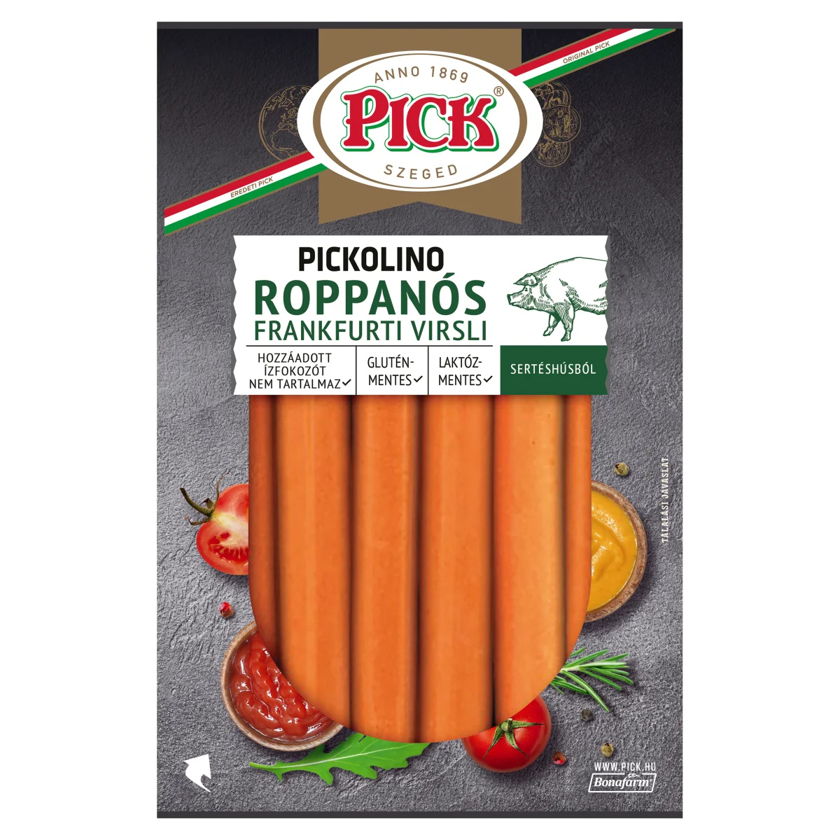 Roppanós frankfurti virsli sertéshúsból, füst ízesítésű és füstölt, védőgázas csomagolásban