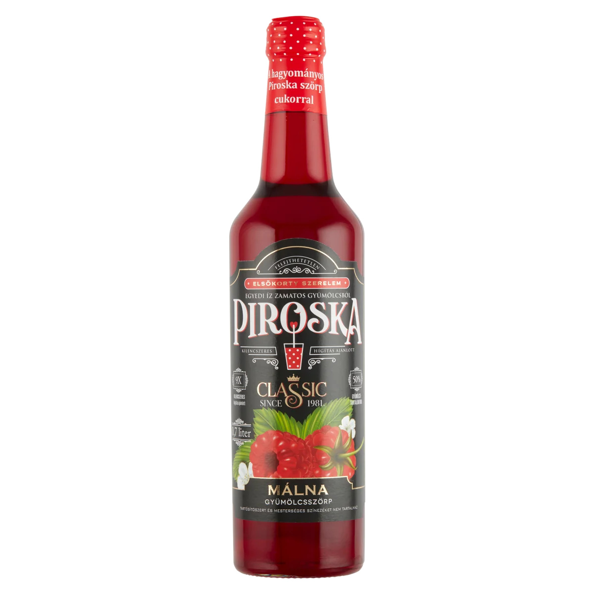 Fruktóz-glükózszörp,Víz,50% málnalé (sűrítményből),Kristálycukor,Étkezési sav (citromsav),Színezék (antociánok),Aromák,Antioxidáns (aszkorbinsav)Tápanyagok