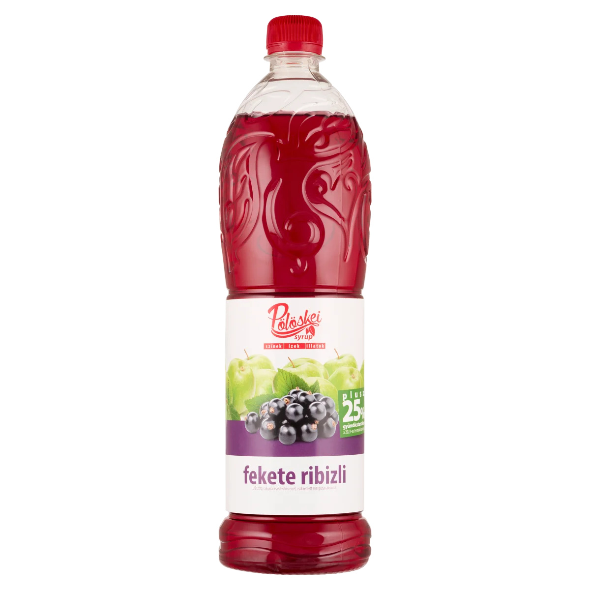 Fekete ribizli ízű szörp cukorral és édesítőszerrel, csökkentett energiatartalommal.