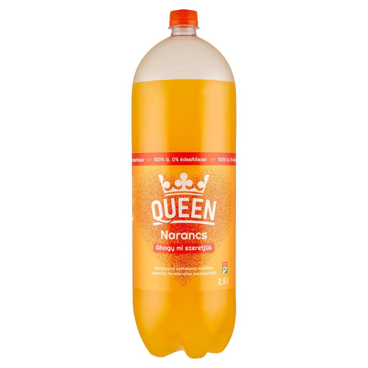 Narancsízű szénsavas üdítőital cukorral, természetes ásványvízből.