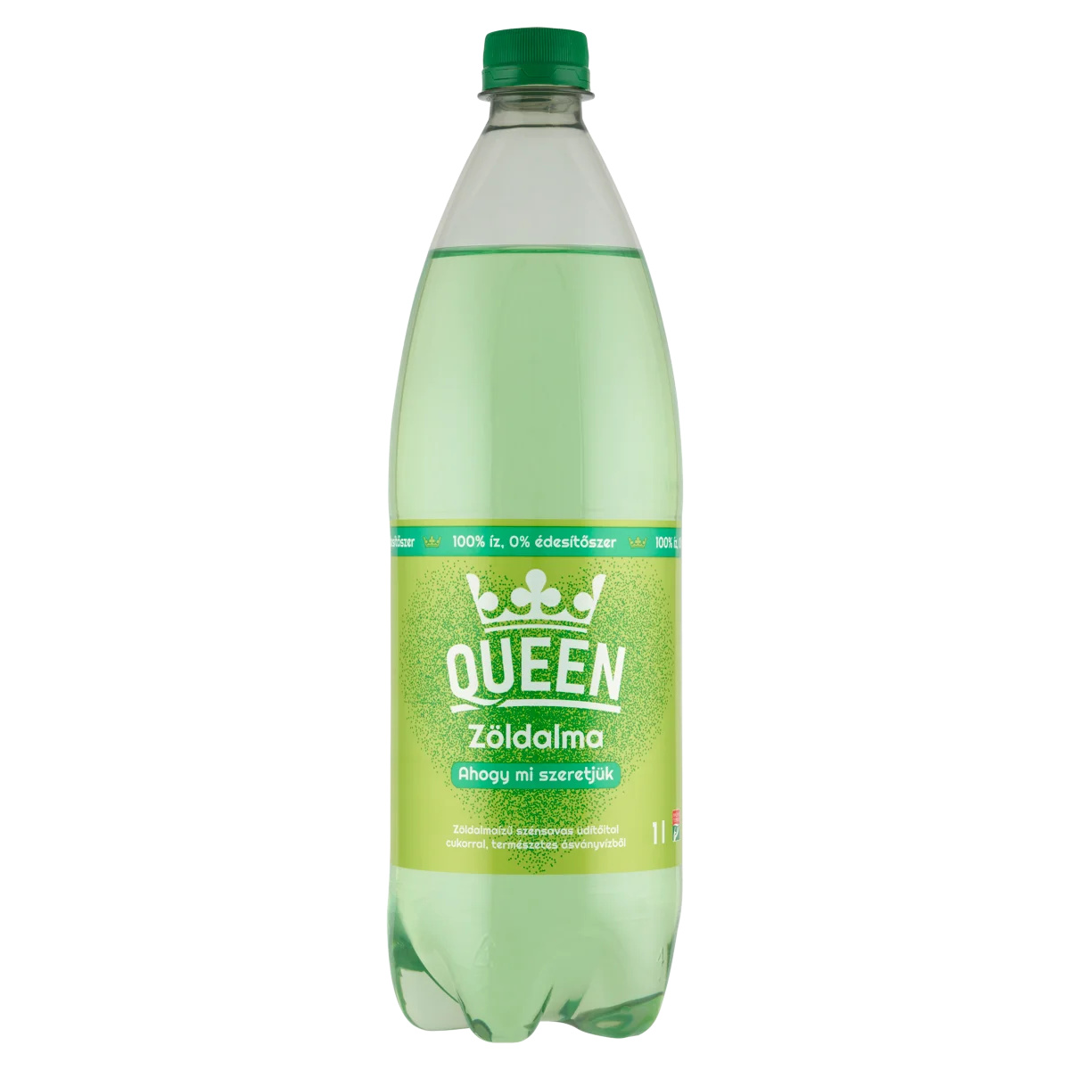 Zöldalmaízű szénsavas üdítőital cukorral, természetes ásványvízből.