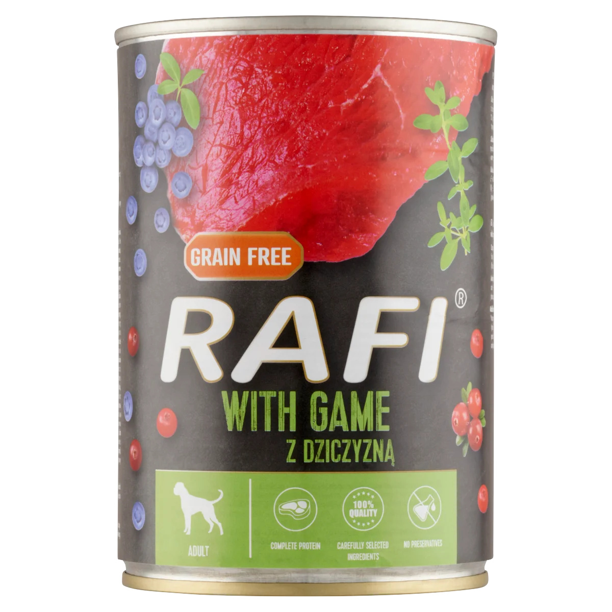 Hús és állati eredetű származékok 65% (vadhús 4%),Gyümölcs (észak-amerikai áfonya 2%, vörösáfonya 2%),Ásványi anyagok,Olajok és zsírok (lenmagolaj 0,2%),Szárított kakukkfű 0,01%Tápanyagok