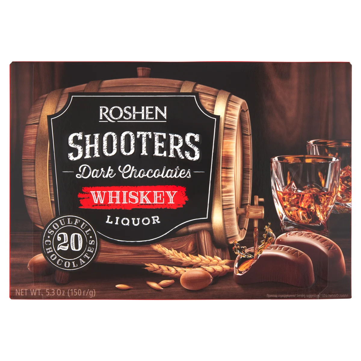 Cukor,Kakaómassza,Glükózszirup,Kakaóvaj,Ivóvíz,Etil-alkohol,Árpamaláta kivonat,Whisky (1,5% a töltelékben),Emulgeálószerek [lecitinek (tartalmaz: szója)],Aromák. Étcsokoládé (62%) kakaó szárazanyag: Legalább 50%. Alkohol-tartalom: 2%,Étcsokoládé (62%) kakaó szárazanyag: legalább 50%,Alkohol-tartalom: 2%Tápanyagok
