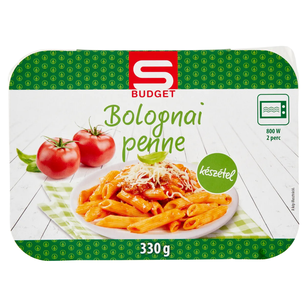 Ivóvíz,Penne tészta 18% (búzaliszt, tojás, ivóvíz),Sertés darált hús 18%,Sűrített paradicsom 15%,Sárgarépa,Petrezselyemgyökér,Trappista sajt,Napraforgóétolaj,Vöröshagyma,Fokhagyma,Cukor,Étkezési só,Babérlevél,Oregánó