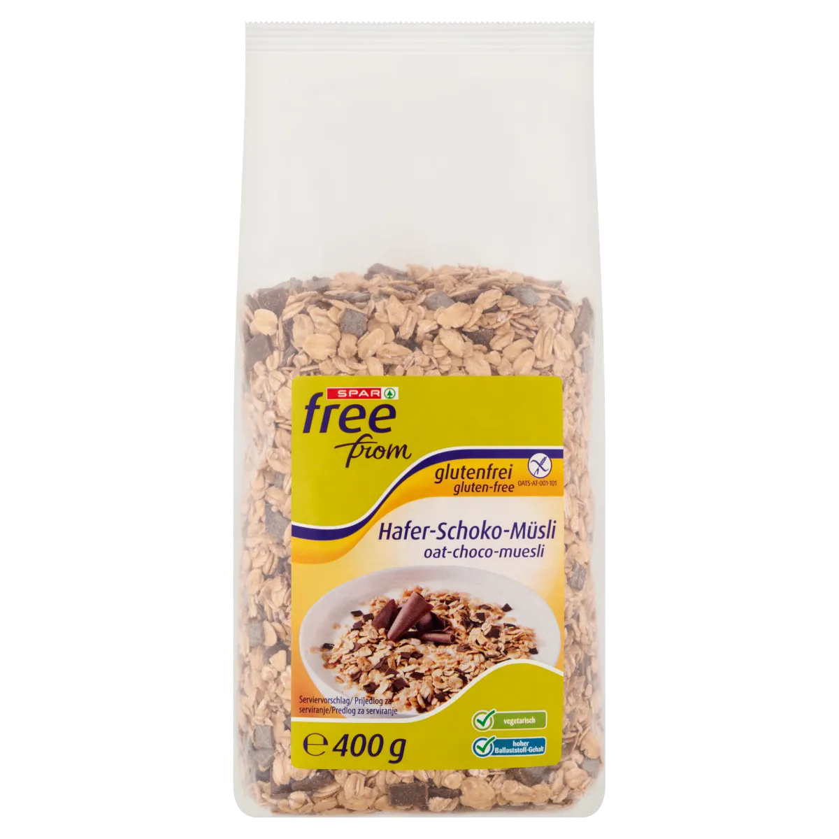 Gluténmentes müzli zabpehelyből, 17% tej- és étcsokoládéval