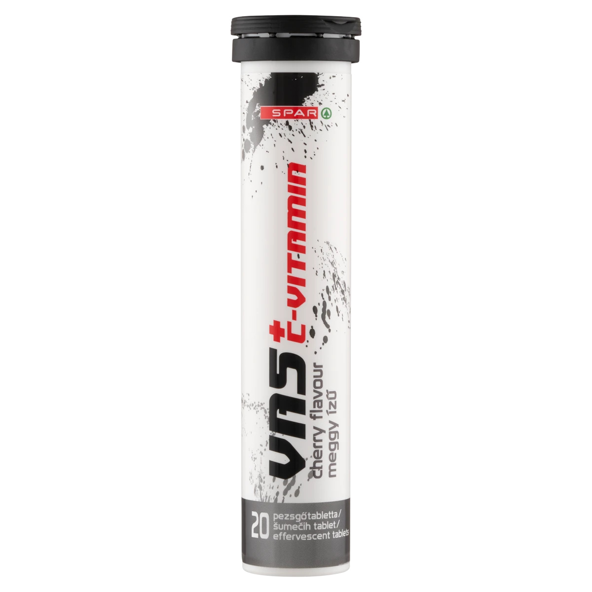 Vas étrend-kiegészítő pezsgőtabletta C-vitaminnal, édesítőszerekkel, meggy ízű.