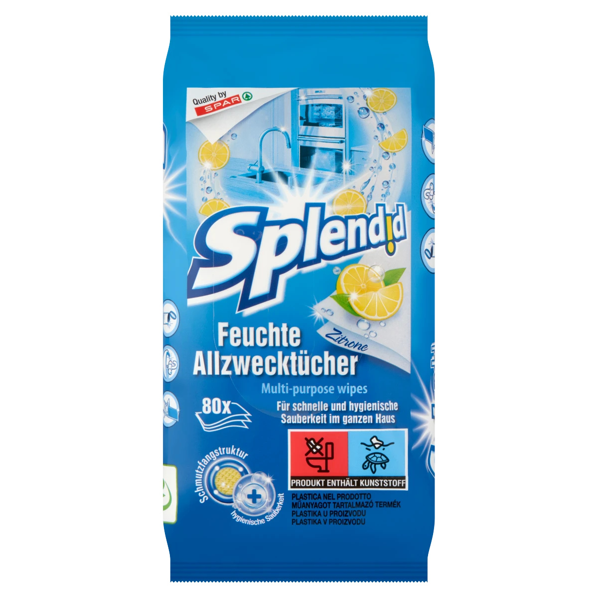 A Splendid nedves tisztítókendő speciálisan kialakított szennyeződésmegkötő felülettel higiénikus tisztaságot biztosít minden vízzel mosható felületen a háztartásban. Az extra vastag törlőkendő hatékony tisztító oldata gyors és higiénikusan csillogó tisztaságot nyújt kellemesen friss illatot hagyva maga után.