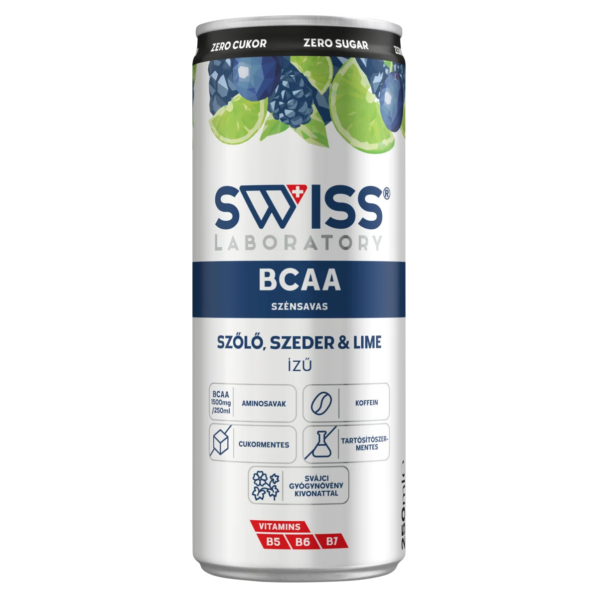 Szőlő-, szeder- és limeízű, szénsavas, alkoholmentes ital hozzáadott vitaminokkal, magnéziummal, cinkkel, elágazó láncú aminosavakkal (BCAA), édesítőszerekkel és svájci gyógynövény kivonattal. Cukormentes termék. Pasztőrözött.