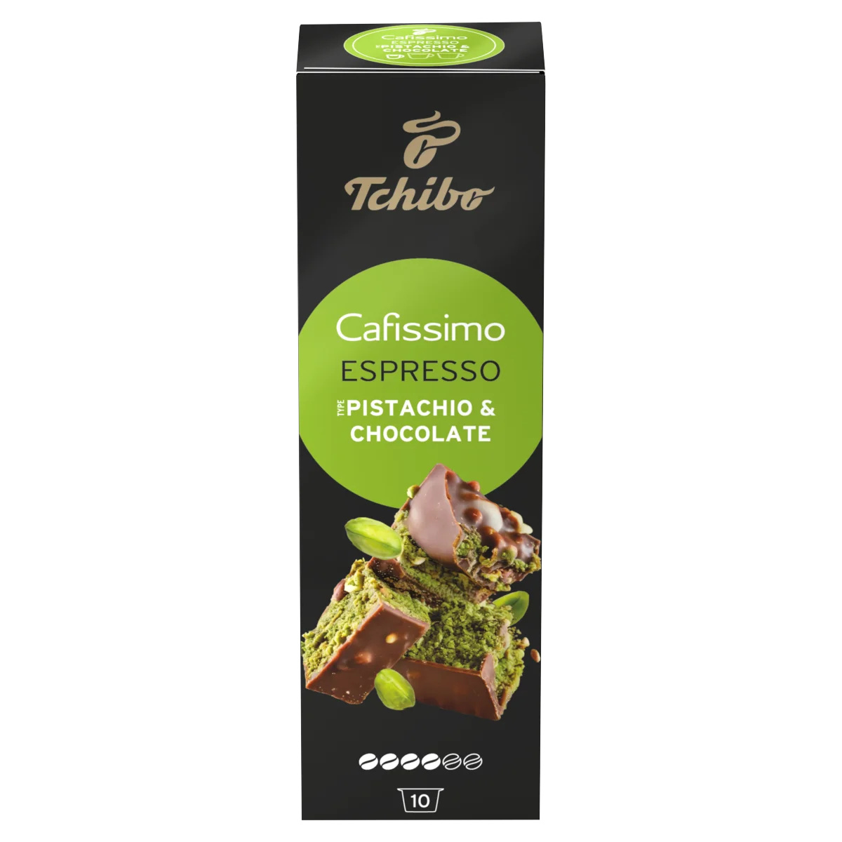 Éld át a kényeztetés új pillanatait a Cafissimo Flavoured őszi kiadással! A kiegyensúlyozott eszpresszó találkozása a csokoládé ízével és enyhe pisztácia-aromával. Az intenzívebb ízélmény érdekében élvezze eszpresszóját az ízlésének megfelelően édesítve. Próbálja ki tejjel, például cappuccinóként vagy latte macchiatóként. Ízintenzitás: 4/6