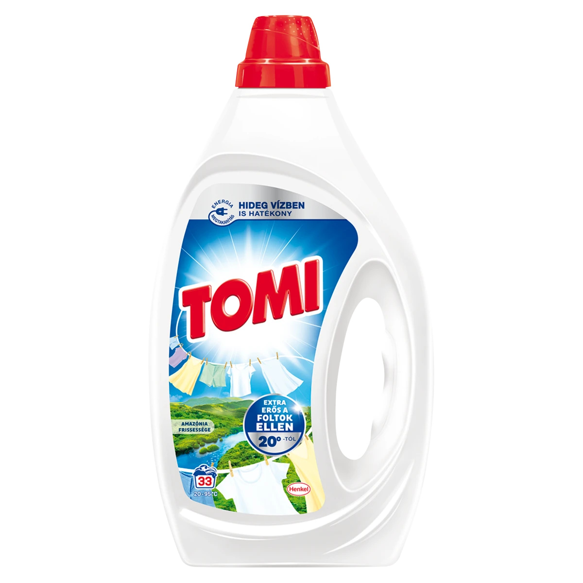 Tomi Amazónia Frissessége folyékony mosószer fehér és világos ruhákhoz. Erőteljes új formulájának köszönhetően a Tomi a legmakacsabb foltokat is eltávolítja. Hatékony minden mosási fokozaton, akár 20°C fokon is, energiát megtakarítva. Emellett nagy mennyiségű szennyezett ruhát varázsol ragyogóan tisztává, miközben friss illatot is kölcsönöz nekik. Ki sokat mos, Tomival mos! - Extra erős a foltok ellen 20°C-tól - Hideg vízben is hatékony, energiát megtakarítva - Ragyogó tisztaság és frissesség