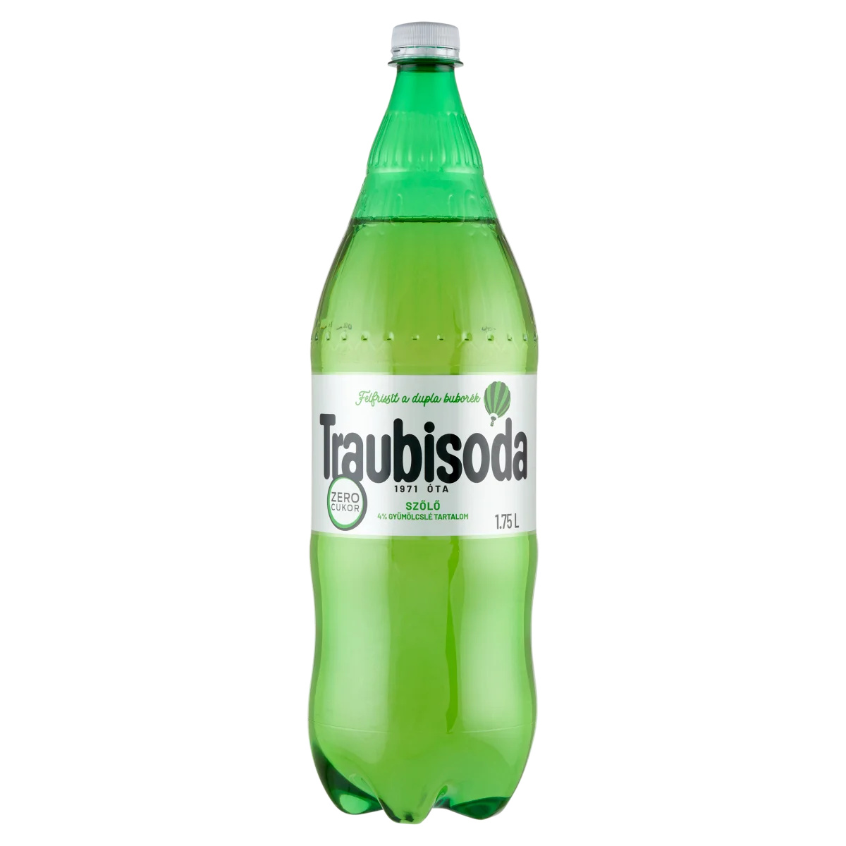 Szőlő szénsavas, energiamentes üdítőital édesítőszerekkel, 4% gyümölcslé tartalommal.