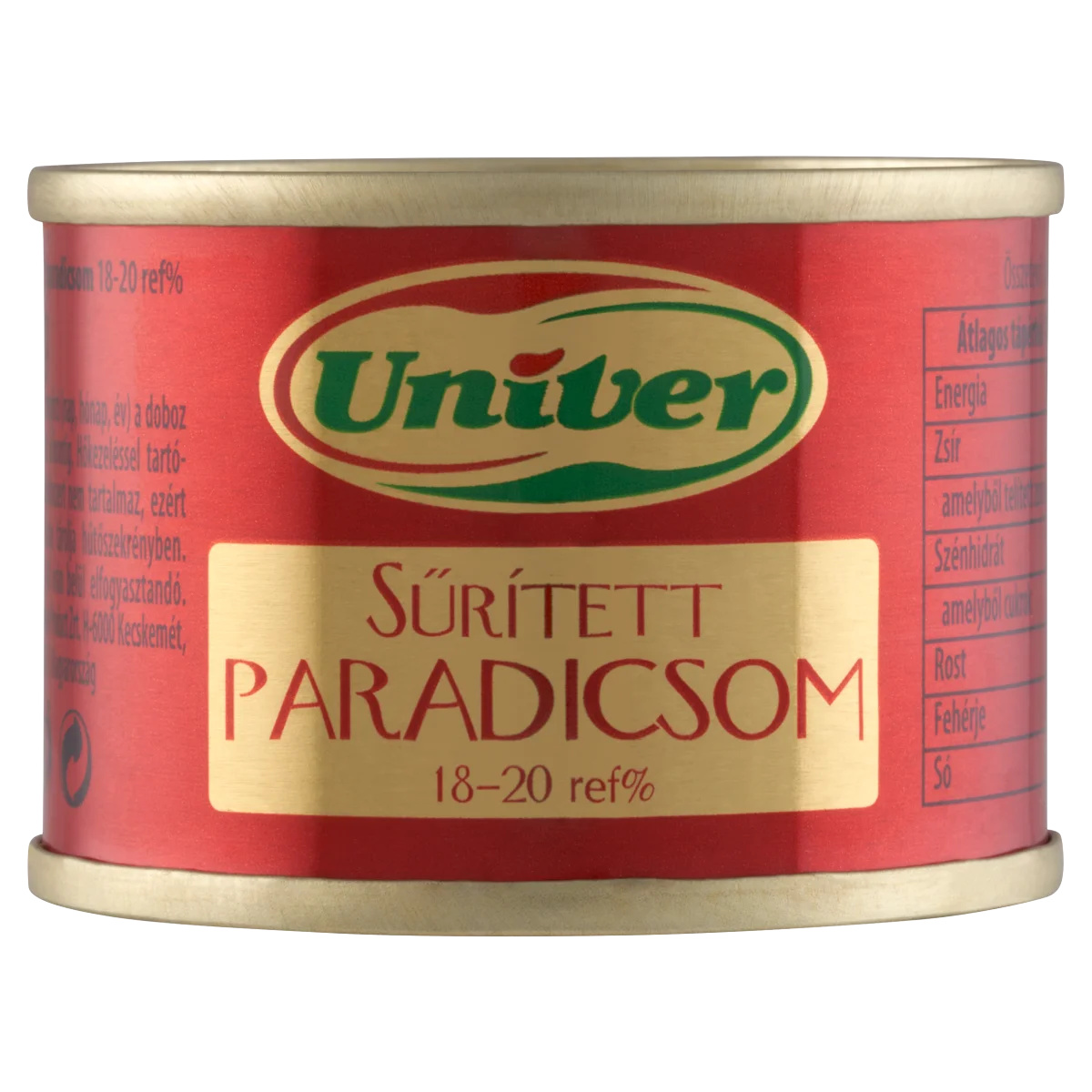 Sűrített paradicsom 18-20 ref%. Hőkezeléssel tartósított.