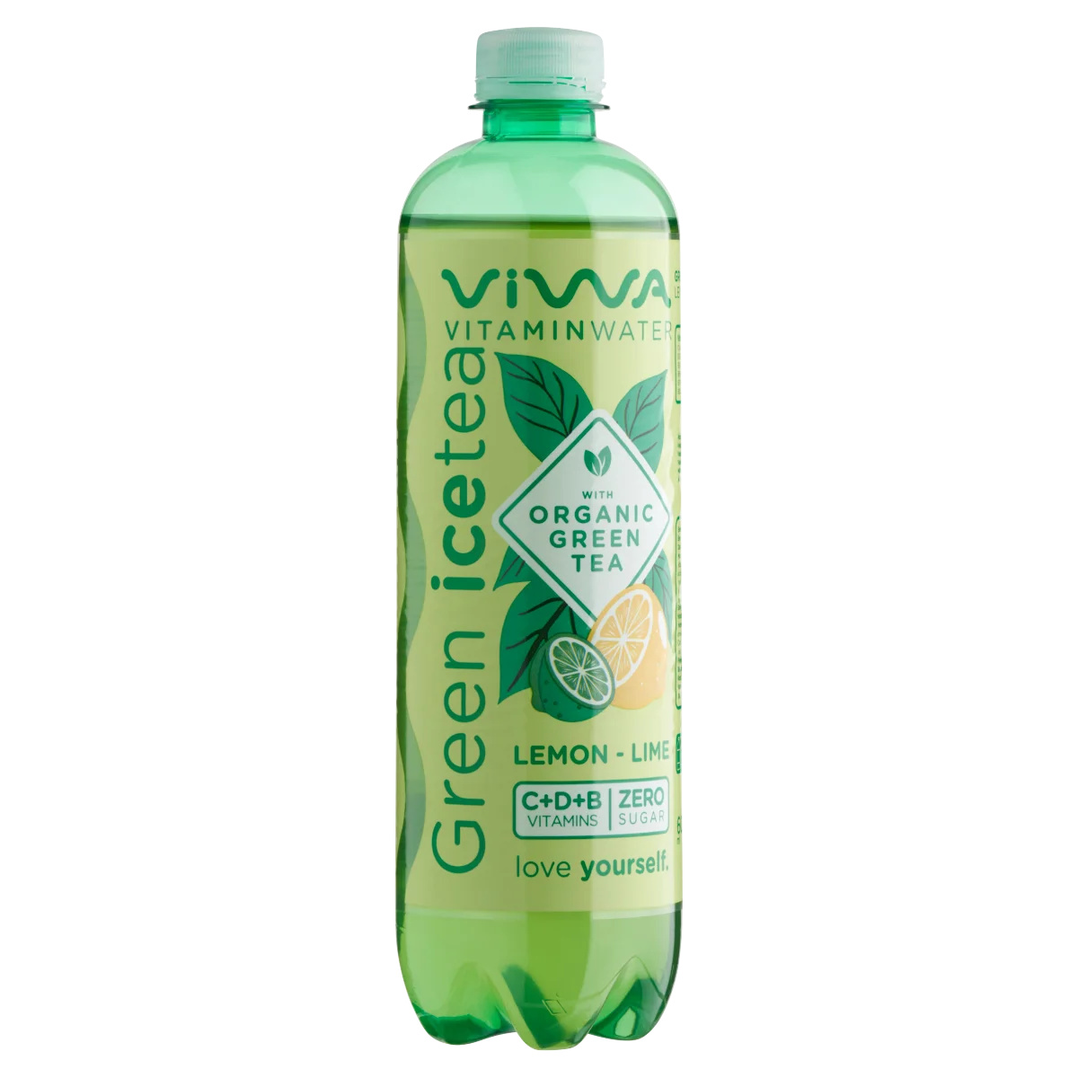 Citrom-lime ízű energiamentes szénsavmentes üdítőital organikus zöld tea kivonattal hozzáadott vitaminokkal és édesítőszerekkel.