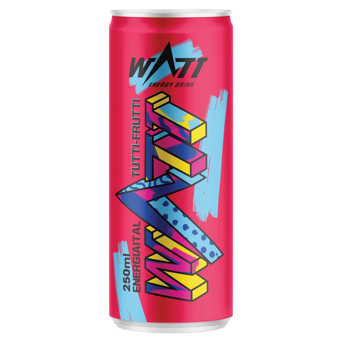 Tuttifrutti ízű, szénsavas energiaital koffeinnel és vitaminokkal. Pasztőrözött.